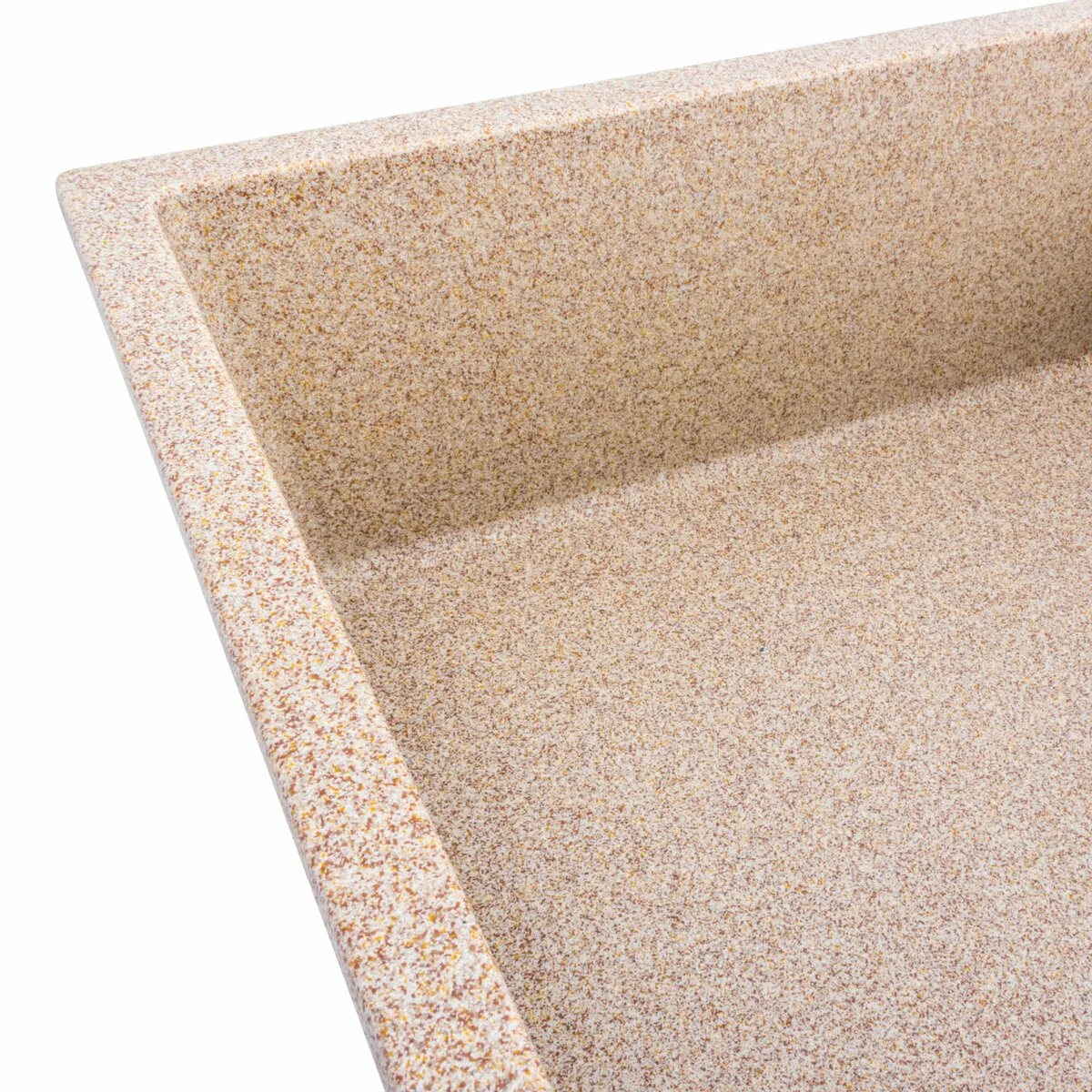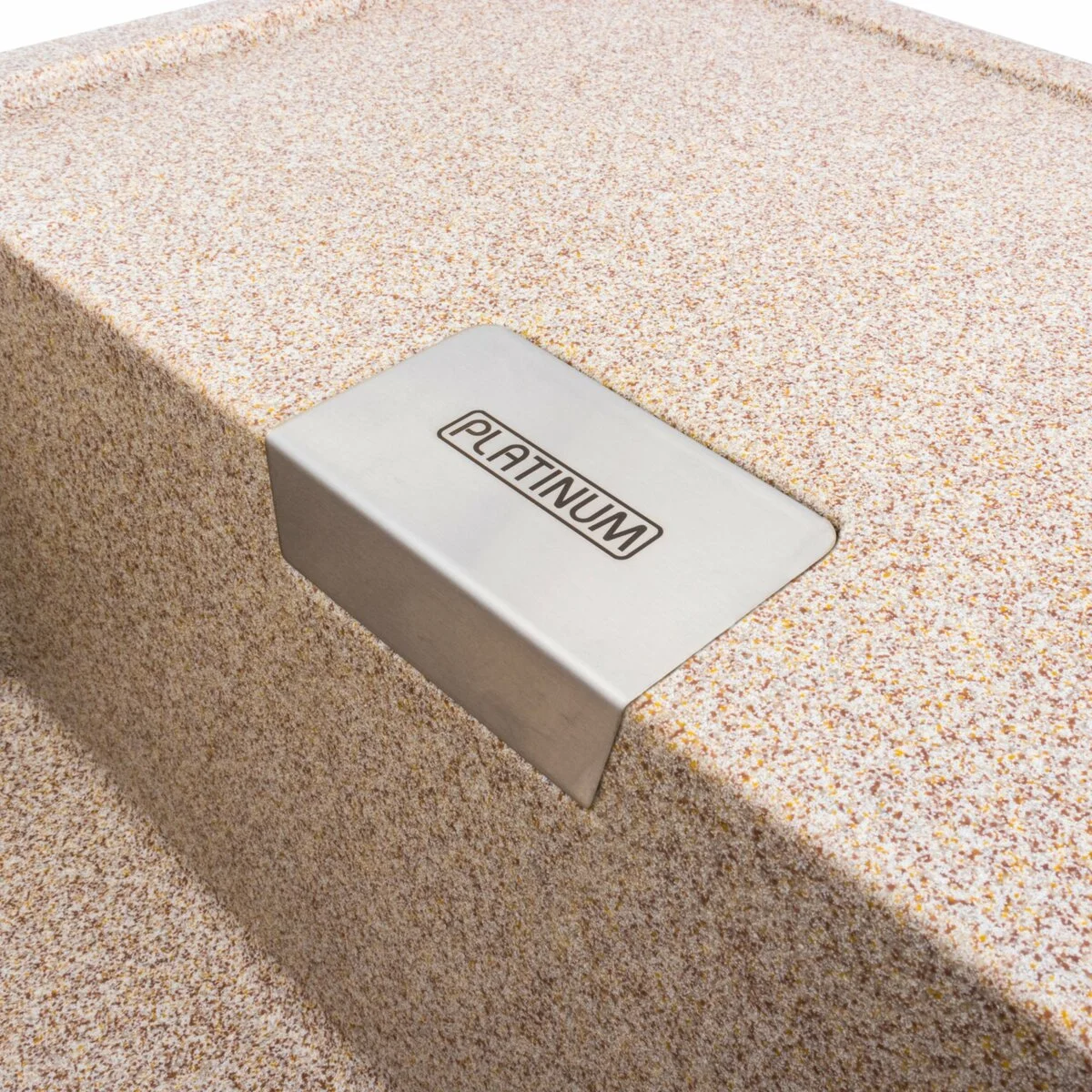 Гранітна мийка для кухні 8650 DIAMOND українського бренду Platinum - це стильна, врізна, прямокутна мийка, яка своїм виглядом чудово доповнить дизайн вашої кухні. Мийка на 80% складається з кварцу та на 20% з надзвичайно твердої акрилової смоли, завдяки чому невибаглива у догляді, а також має великий запас міцності. Розміри чаші, 545х450х185 мм, роблять її дуже місткою та зручною у використанні. Мийка має матову фактуру і приємний для ока колір що дозволяє їй легко вписатися в інтер'єр кухні. Мийка виготовлена в Україні із якісної німецької сировини за технологією Solid Surface з дотриманням усіх необхідних стандартів.
