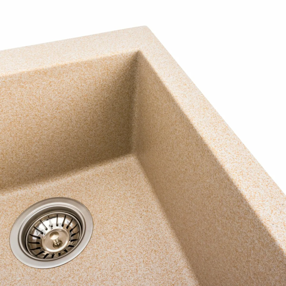 Гранітна мийка для кухні 4150 SOKIL українського бренду VALESO - це стильна, врізна, прямокутна мийка, яка своїм виглядом чудово доповнить дизайн вашої кухні. Мийка на 80% складається з кварцу та на 20% з надзвичайно твердої акрилової смоли, завдяки чому невибаглива у догляді, а також має великий запас міцності. Мийка має матову фактуру і приємний для ока колір, що дозволяє їй легко вписатися в інтер'єр кухні. Мийка виготовлена в Україні із якісної німецької сировини за технологією Solid Surface з дотриманням усіх необхідних стандартів.