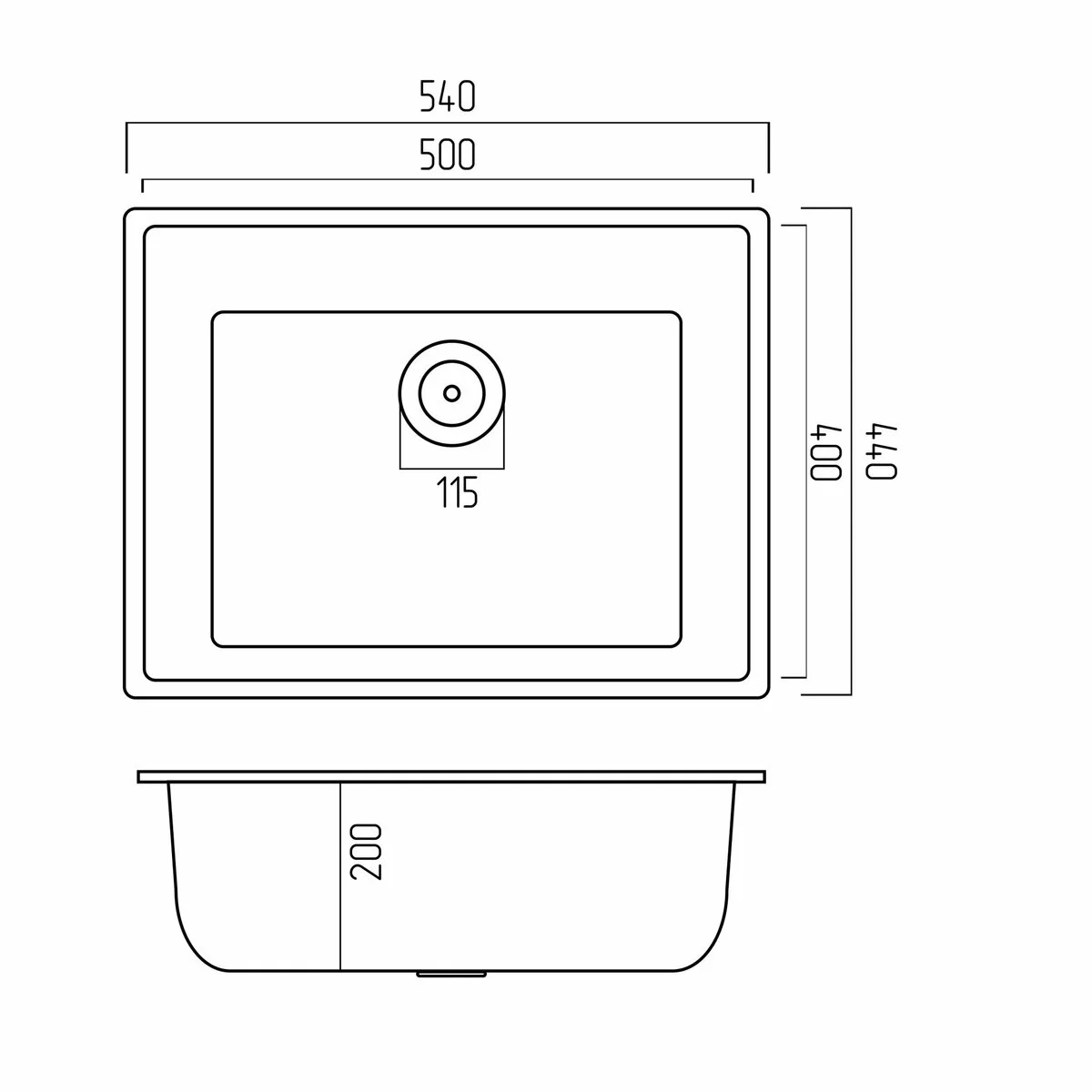 Розміри мийки – 540х440х200 мм, вага – 9,2 кг, сифон – євросифон з широкою горловиною, 110 мм.