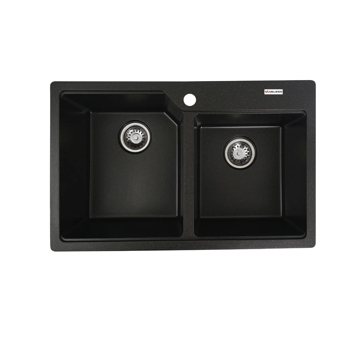 Гранітна мийка для кухні VALESO 7850 HARMONY матова Чорний металік
