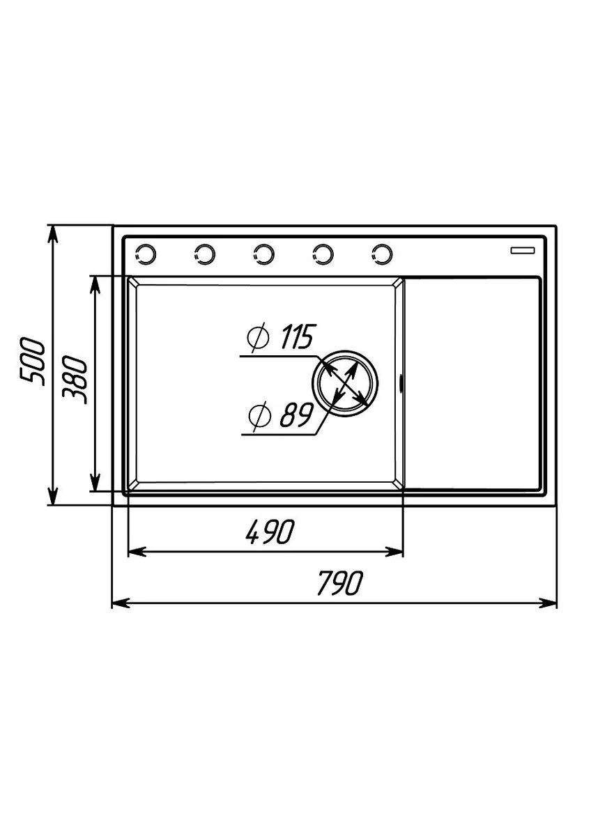 Ця мийка має розміри, які роблять її ідеальним вибором для різних кухонь. З розмірами 790х500х200мм, вона легко впишеться навіть у невеликі простори, забезпечуючи високий рівень зручності та функціональності.Розмір чаші 490x380x200мм.