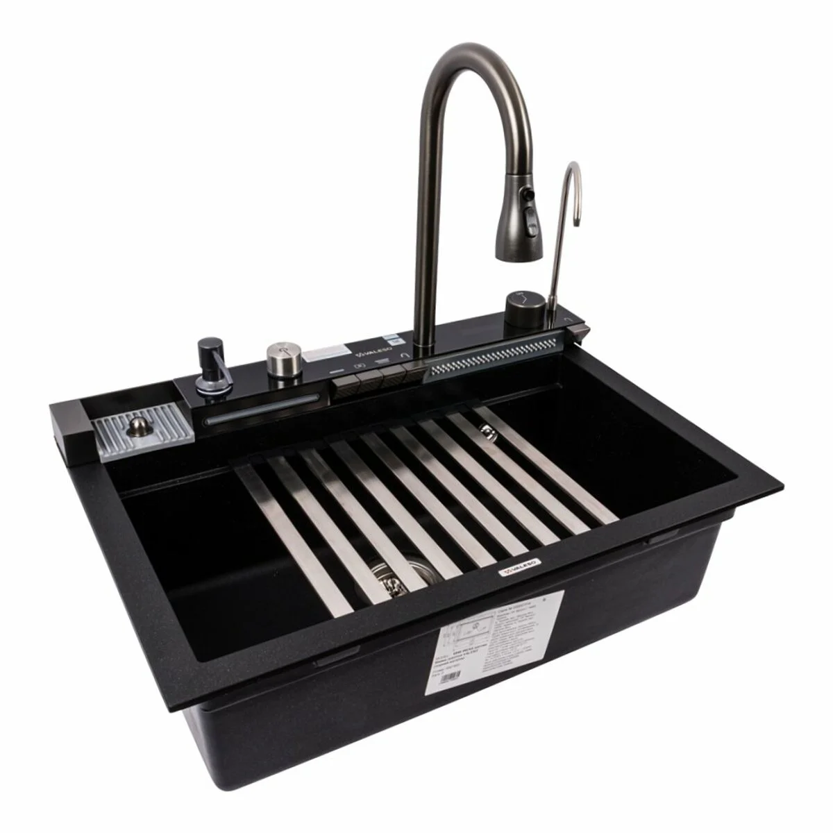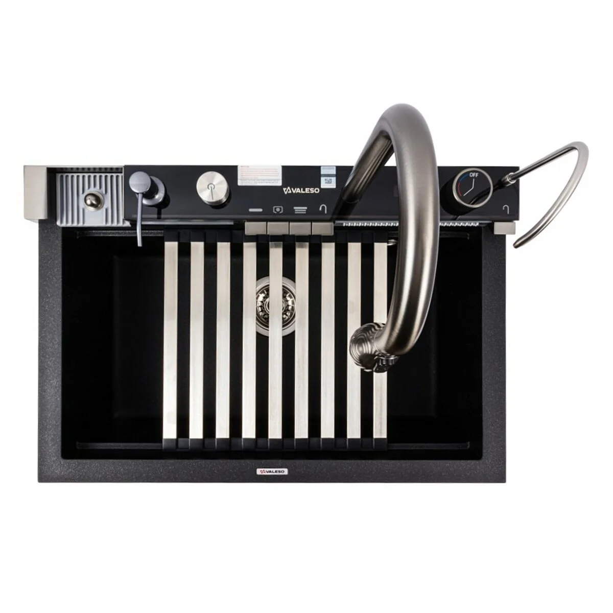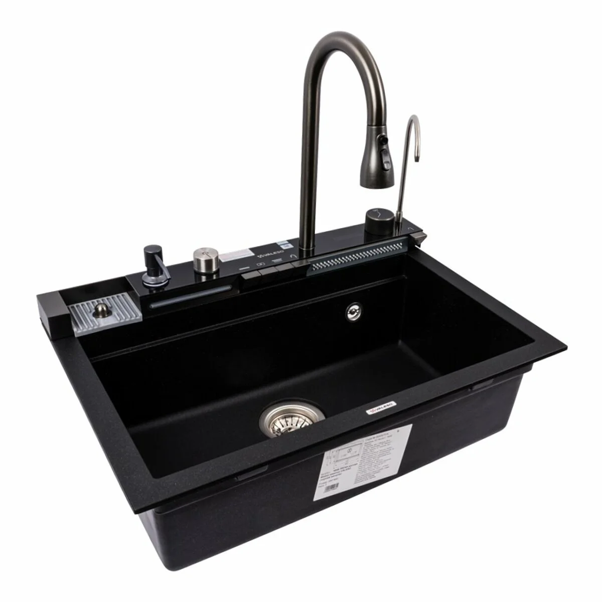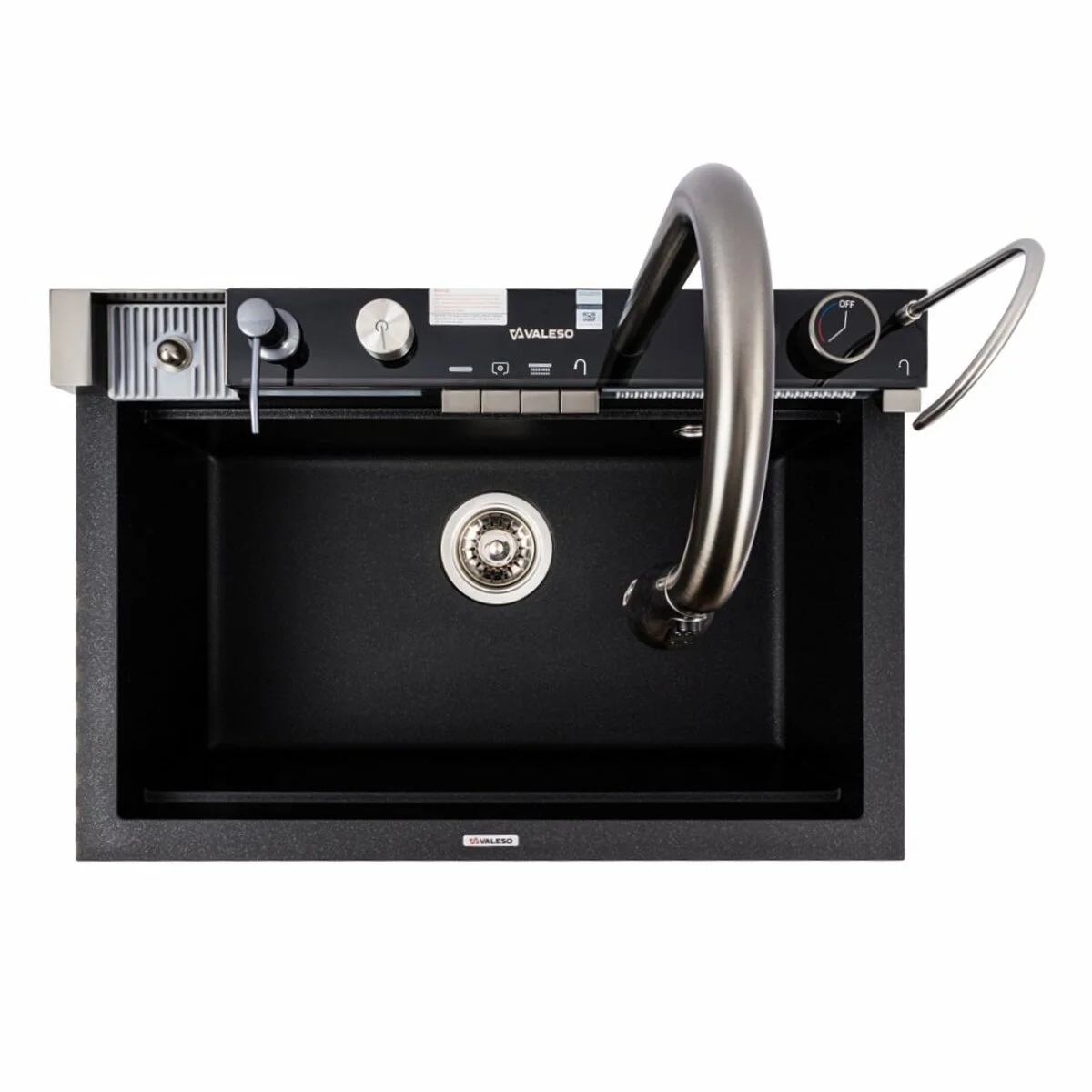Гранітна мийка VALESO 6846 IRENA матова (чорний металік) з розширеною комплектацією