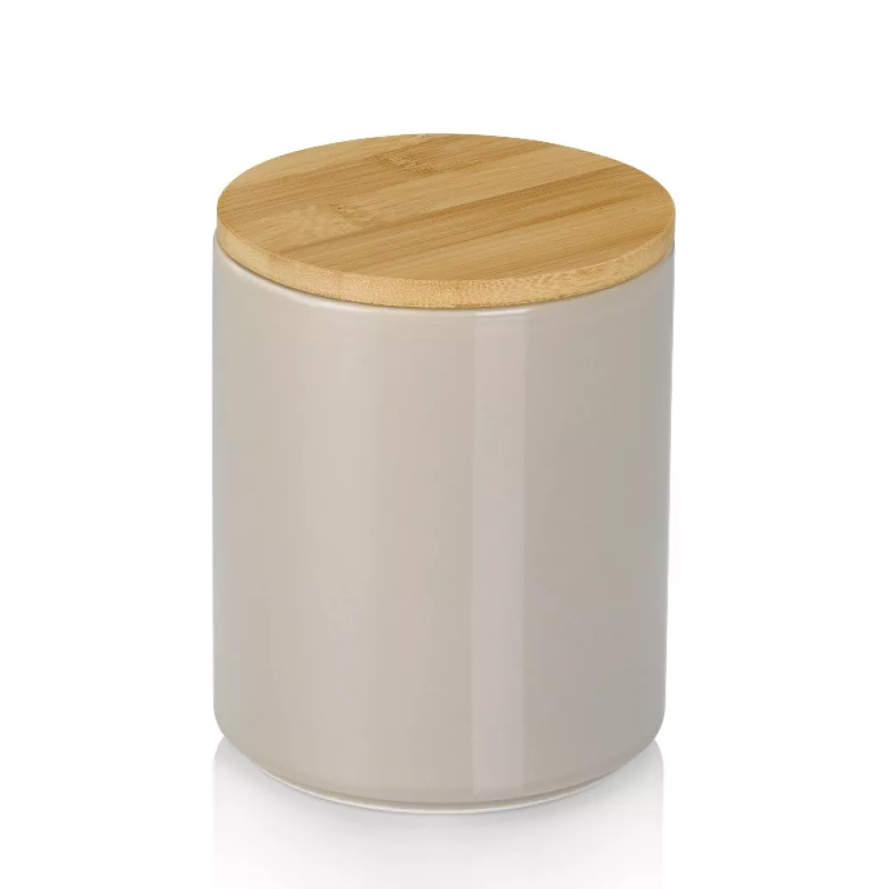 Німецький виробник посуду та начиння для кухні KELA представляє стильну та практичну керамічну ємність для зберігання сипучих KELA Cady. Кераміка краще зберігає сипучі продукти, не дозволяє їм сперти чи насититися сторонніми запахами. Дерев'яна кришка з натурального бамбука щільно зариває ємність завдяки силіконовому кільцю.