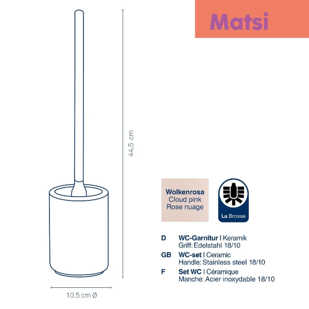 Єршик для унітазу KELA Matsi, світло-рожевий, 44.5х10.5 см (23716)