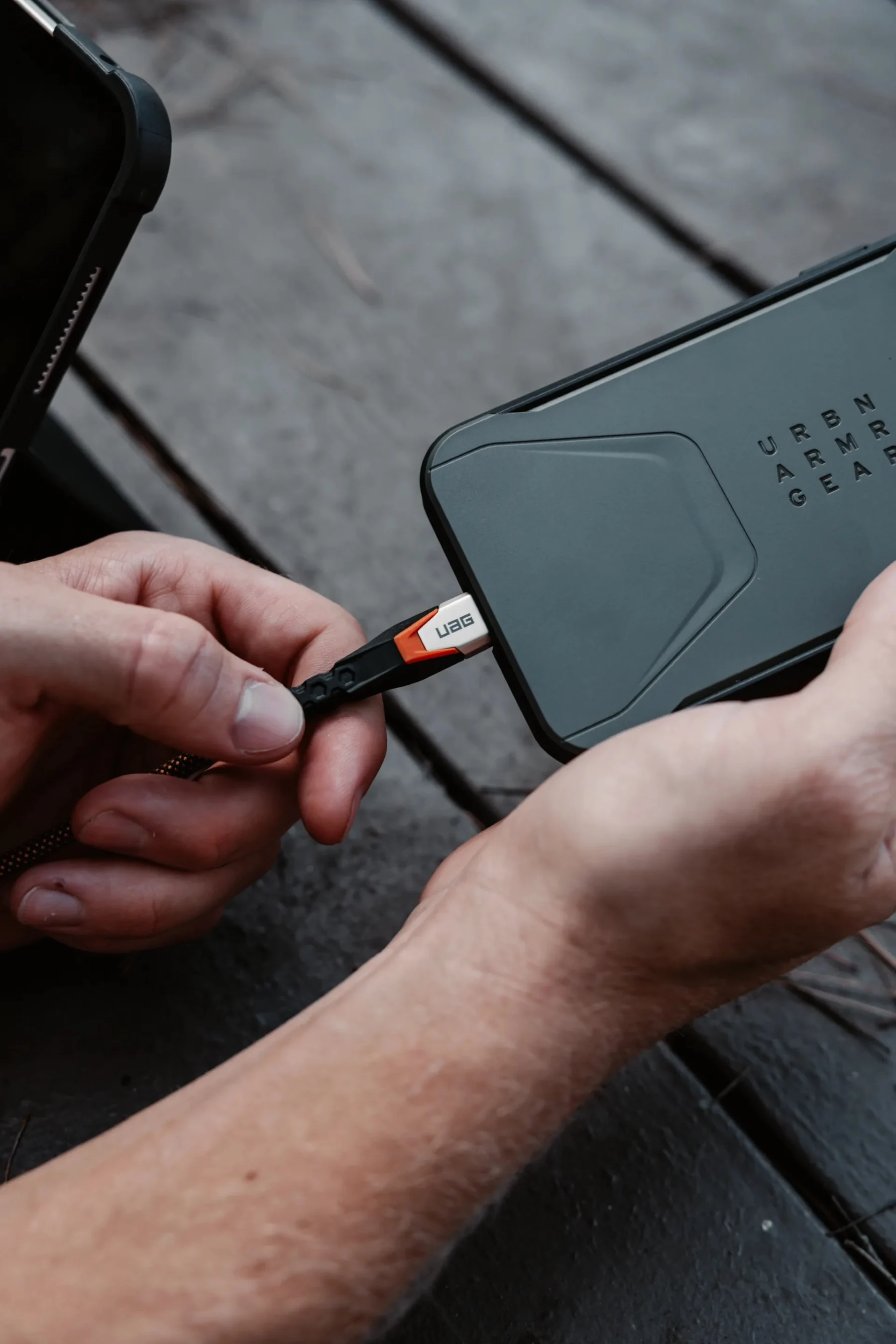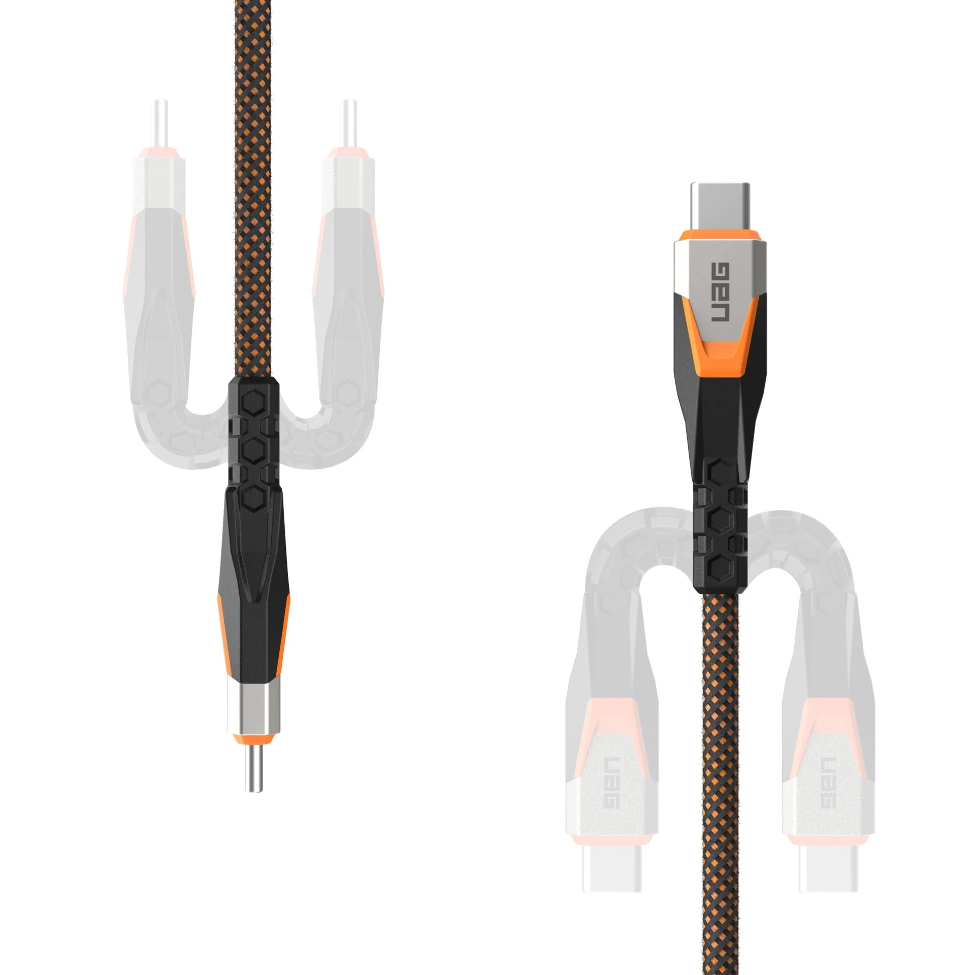 Кабель UAG 3.2 USB-C 20 Гбіт/с 240 Вт — преміальний та міцний кабель для заряджання та передачі даних. Довжина 0.75 метрів ідеально підходить для підключення до телефону, планшета або ноутбука, забезпечуючи до 240 Вт швидкого заряджання та 20 Гбіт/с передачі даних. Різноспрямована шестигранна матриця для зняття натягу забезпечує покращений захист від багаторазових вигинів. Обернутий в плетений нейлон для міцності та довговічності.