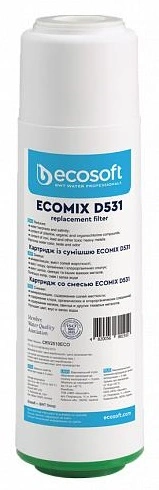 Картридж з сумішшю EcomixD531 Ecosoft 2.5х10", видаляє жорсткість, хлор, залізо, марганець, органіку
