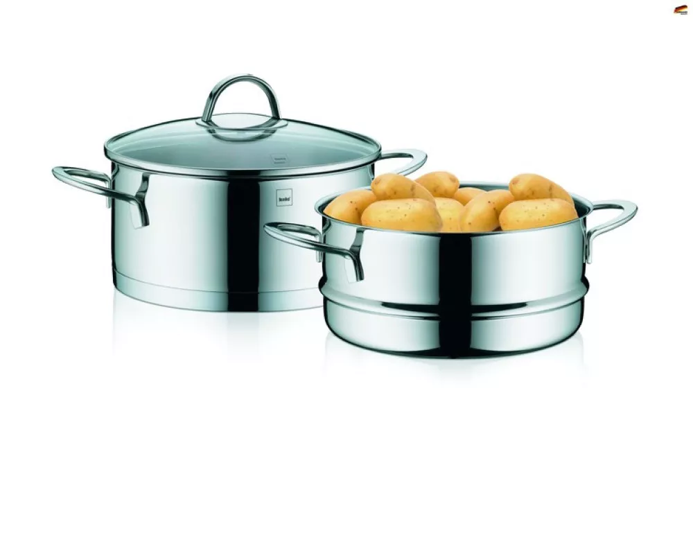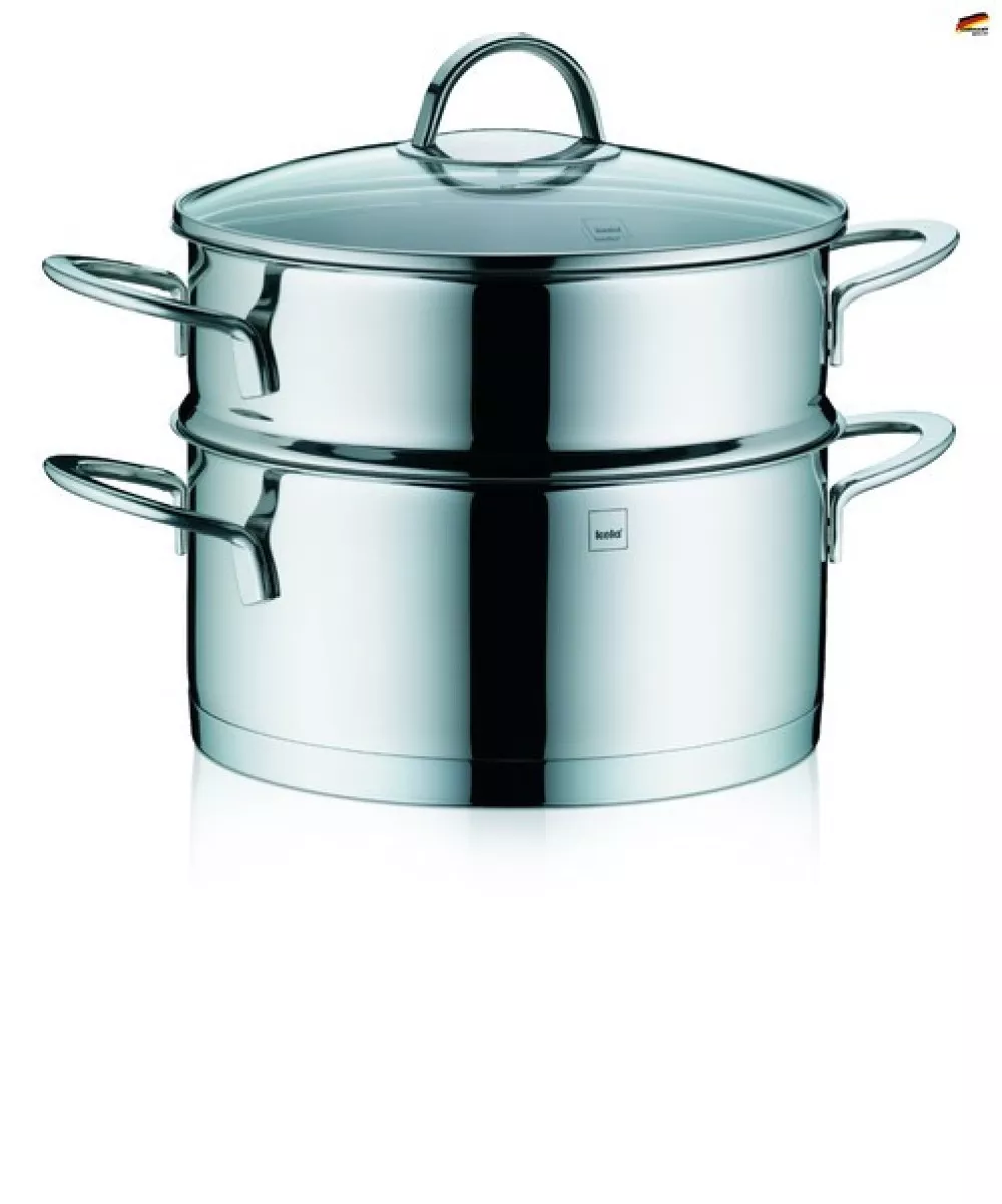 Каструля з пароваркою KELA Cailin виготовлена з нержавіючої сталі 18/10 з глянсовим поліруванням та чудово доповнює кухонний асортимент ТМ KELA. Капсульне дно забезпечує рівномірний розподіл тепла та характеризується високою стійкістю до деформації.