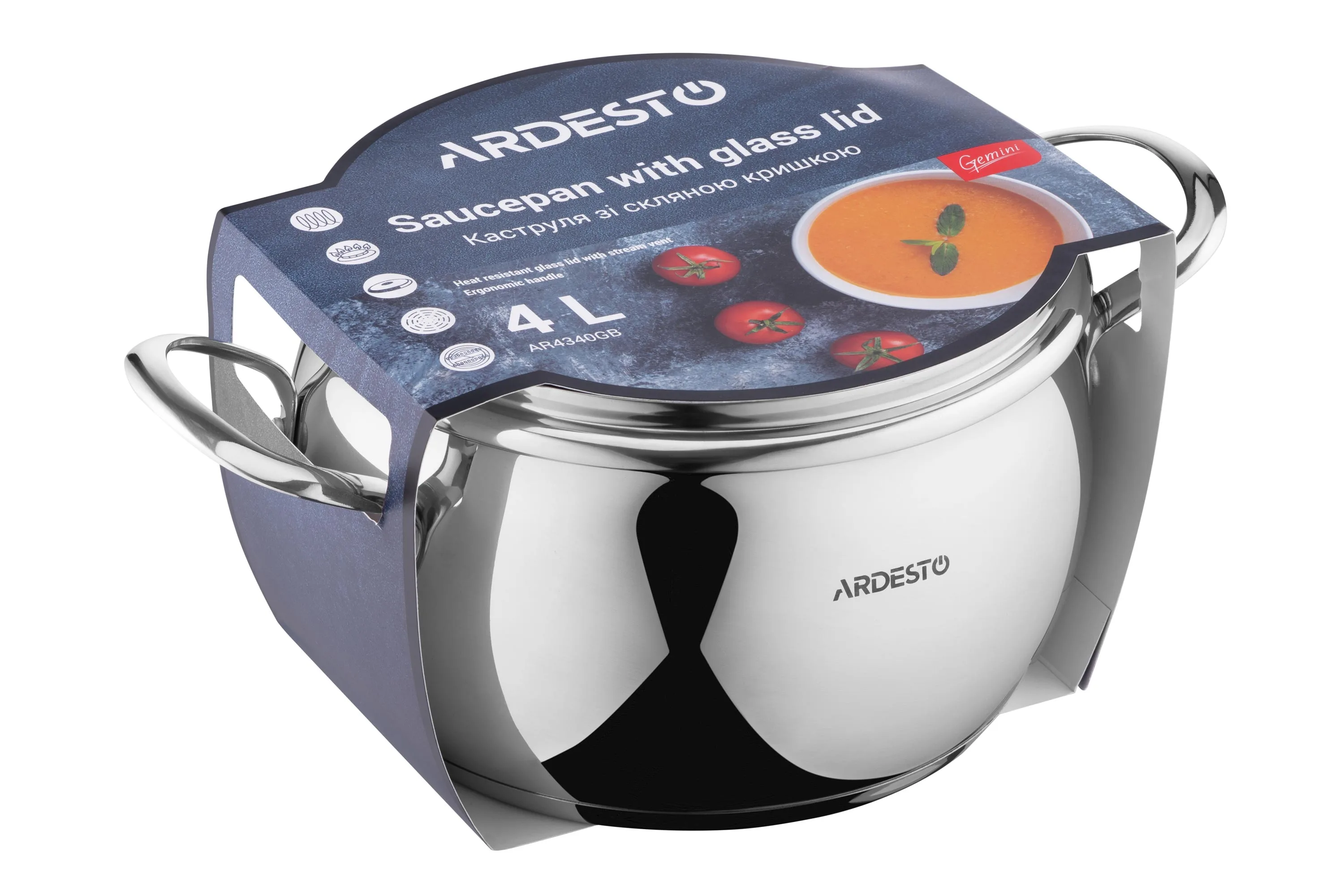 Каструля зі скляною кришкою Ardesto Gemini Liguria, 4л, нержавіюча сталь