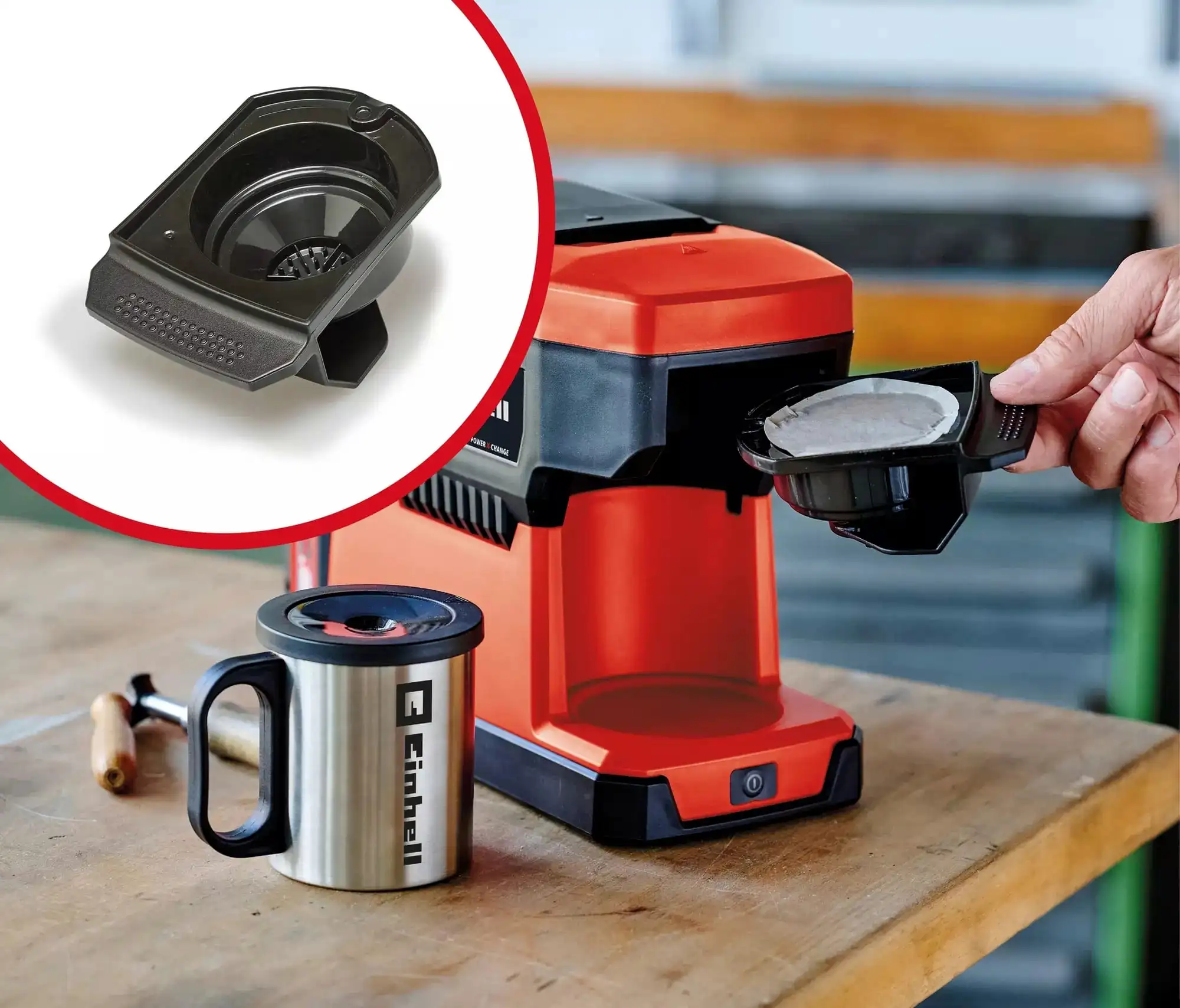 Акумуляторна кавомашина Einhell TE-CF 18 Li - Solo — це портативний і зручний пристрій, який працює від акумуляторної системи Power X-Change (18В). Вона дозволяє швидко приготувати до 240 мл гарячої кави (≈80°C) навіть там, де немає доступу до електромережі. Компактний дизайн і невелика вага (1.2 кг) роблять її ідеальним вибором для подорожей, кемпінгу, майстерень або офісів. Поставляється без акумулятора та зарядного пристрою.