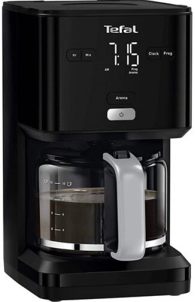 Кавоварка Tefal крапельна Smart&light 1.25л, мелена, таймер включення, годинник, чорний