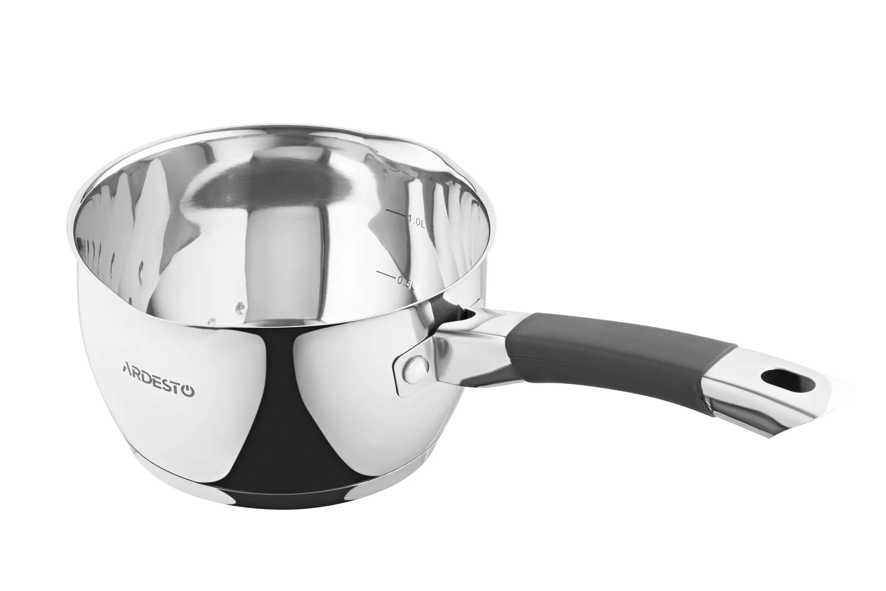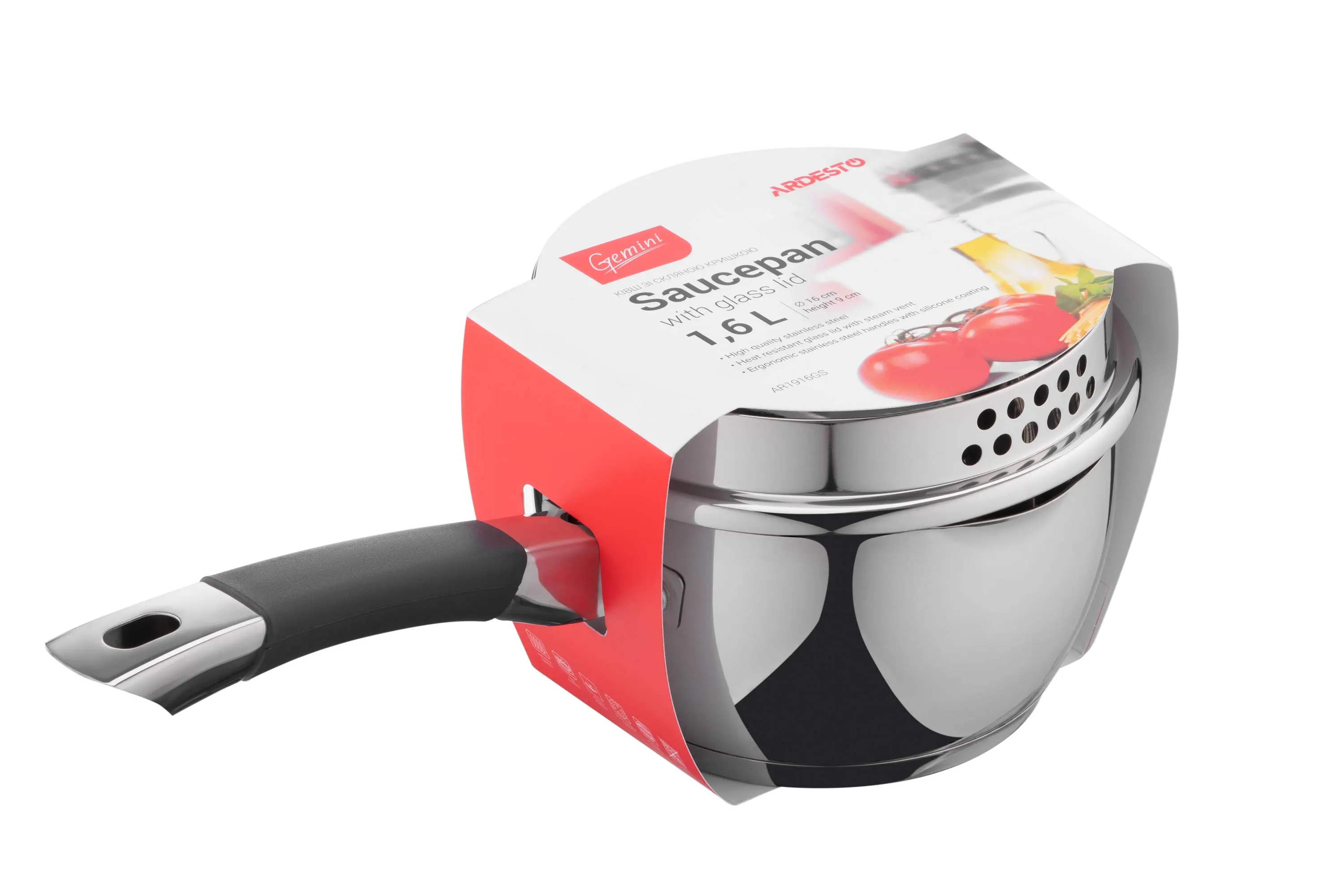 Ківш зі скляною кришкою та зливом Ardesto Gemini Livorno, 1.6л, нержавіюча сталь, силікон