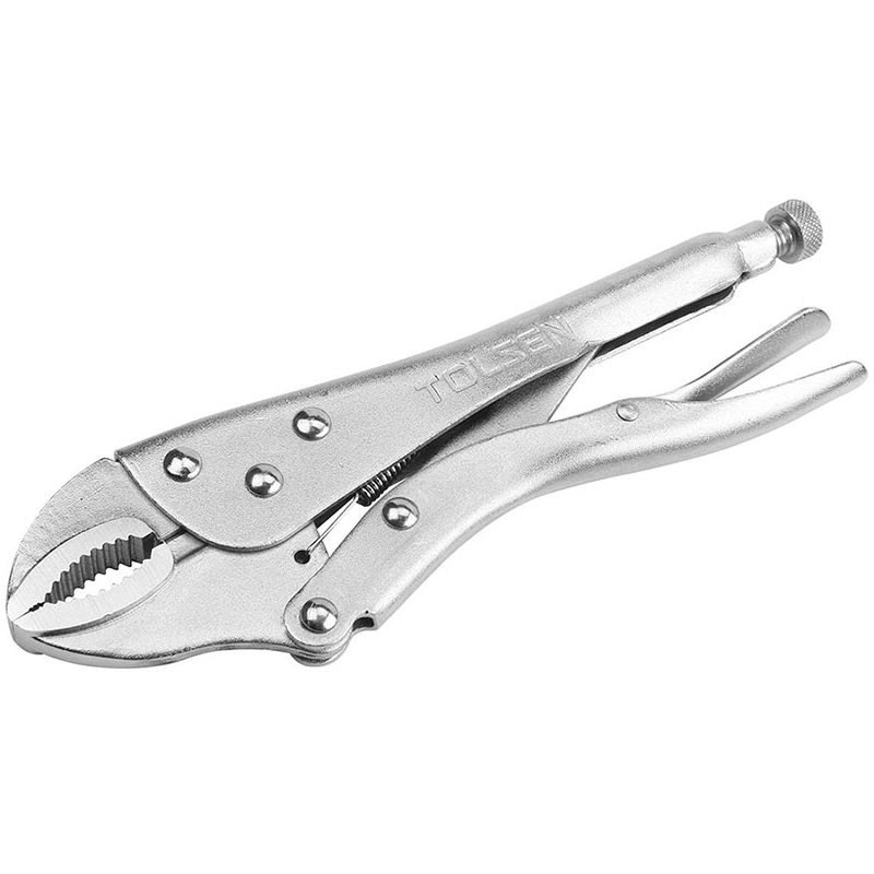 Кліщі затискні Tolsen, довжиною 250 мм, забезпечують надійне затискання з максимальним розкриттям 0-50 мм. Оснащені храповим механізмом для зручності роботи. Виготовлені зі спеціальної кованої інструментальної сталі з нікельованим покриттям.