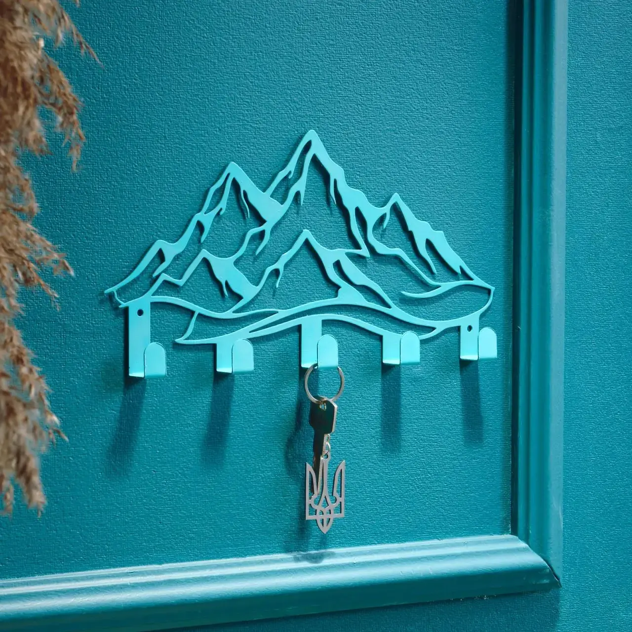 Ключниця настінна металева, 29х14.5см, Колір "бірюзовий", гори на 5 гачків