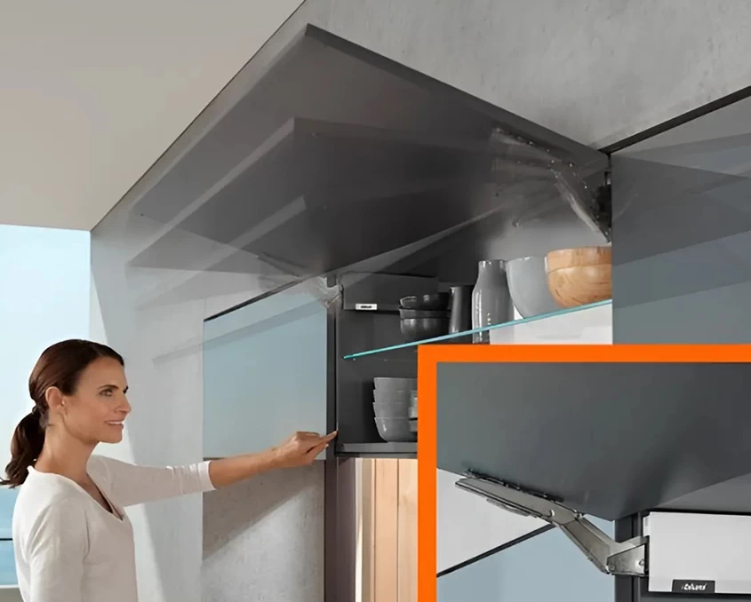 Aventos HK TOP від Blum — це компактний і стильний підйомний механізм для верхніх шаф, який ідеально підходить для невеликих і середніх фасадів. Завдяки своїй компактності, Aventos HK TOP непомітно інтегрується в шафи, залишаючи більше простору для дизайну інтер'єру. Механізм забезпечує легке і плавне підняття фасадів вгору, відкриваючи доступ до вмісту шафи без зайвих зусиль.