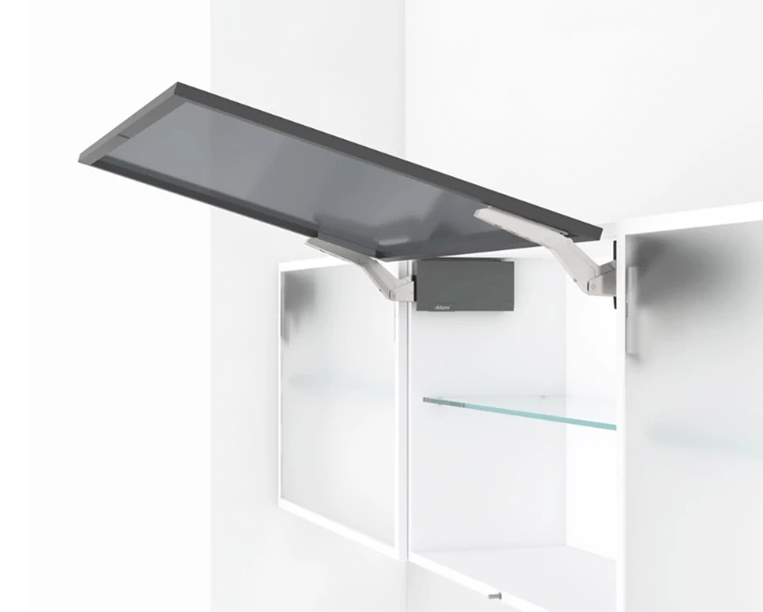 Aventos HK TOP від Blum — це компактний і стильний підйомний механізм для верхніх шаф, який ідеально підходить для невеликих і середніх фасадів. Завдяки своїй компактності, Aventos HK TOP непомітно інтегрується в шафи, залишаючи більше простору для дизайну інтер'єру. Механізм забезпечує легке і плавне підняття фасадів вгору, відкриваючи доступ до вмісту шафи без зайвих зусиль.
