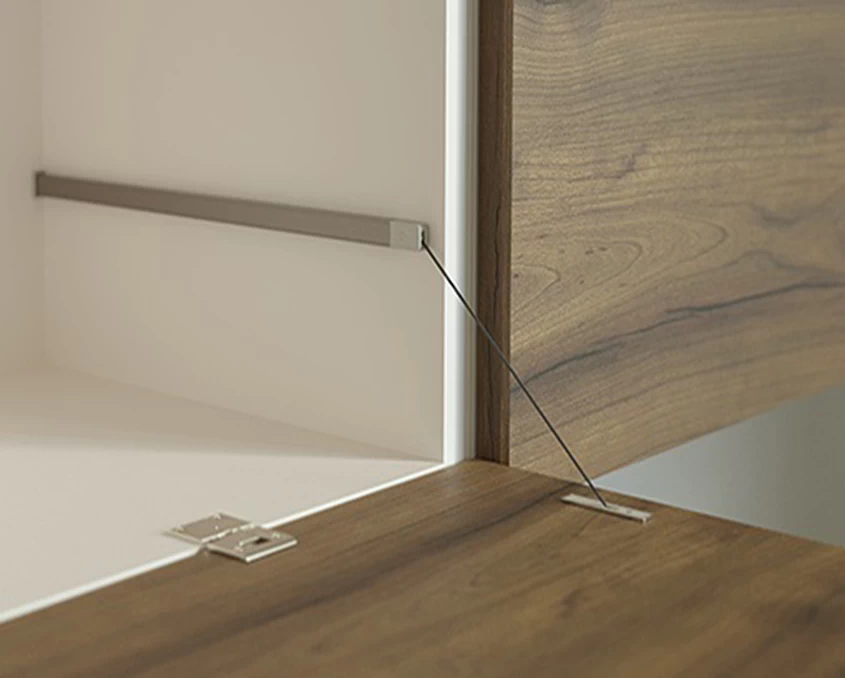 - Адаптація до різних габаритів меблів – механізм сумісний із корпусами різної глибини завдяки можливості підрізування троса та профілю (мінімальна внутрішня глибина корпусу – 78 мм).