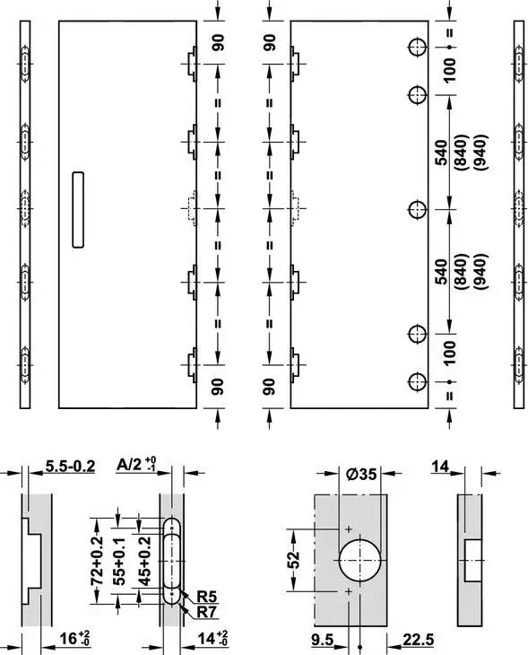 Комплект фурнітури Slido F-Park72 60B для 2-х дверних полотен вага: 60кг висота: 2200-2700мм глибина