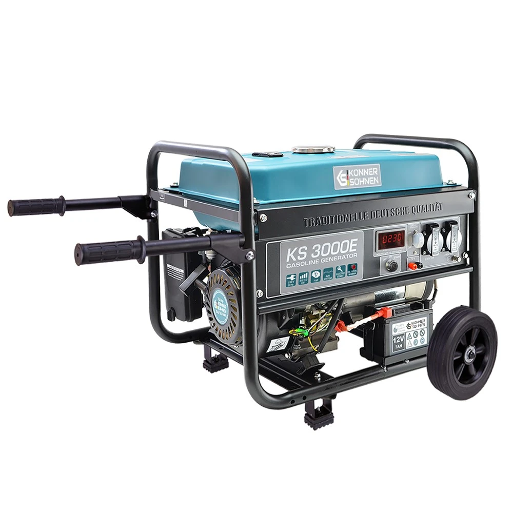 Транспортувальний комплект Konner&Sohnen KS 3 KIT до якого входять 2 колеса, 2 опорні ніжки, піввісь та 2 ручки. Набір підходить для всіх модифікацій бензинових генераторів KS 2900, KS 3000 (рама Ø26). Піввісь має один закріплений на ній фланець для кріплення напівосі до рами генератора, інший незакріплений. Це дає змогу кріпити напіввісь на рамах різної ширини.