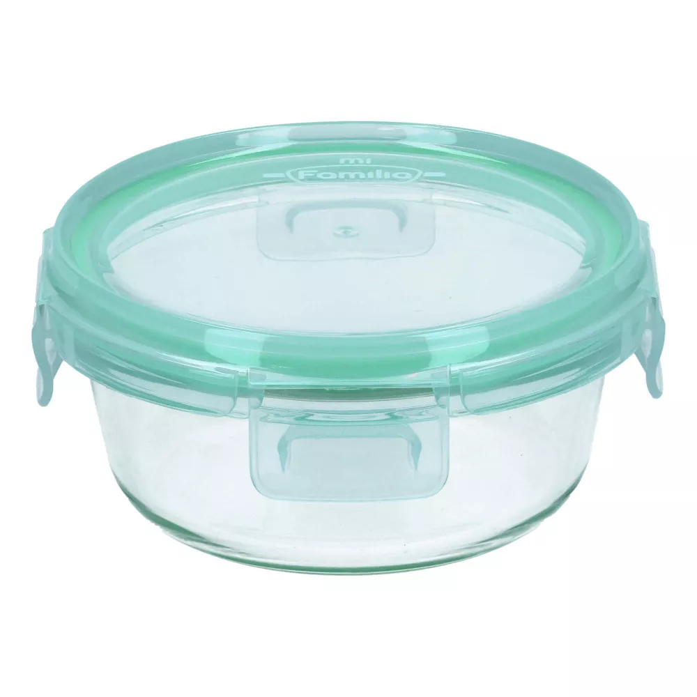 Контейнер для зберігання, запікання, заморозки miFamilia Full wrapped collection круглий. 950 мл, 18x8,5. Форма кришки повністю огортає край скла, що допомагає швидше і точніше її зафіксувати, а також захищає від ударів. Знімний ущільнювач у кришці. Зручне миття.