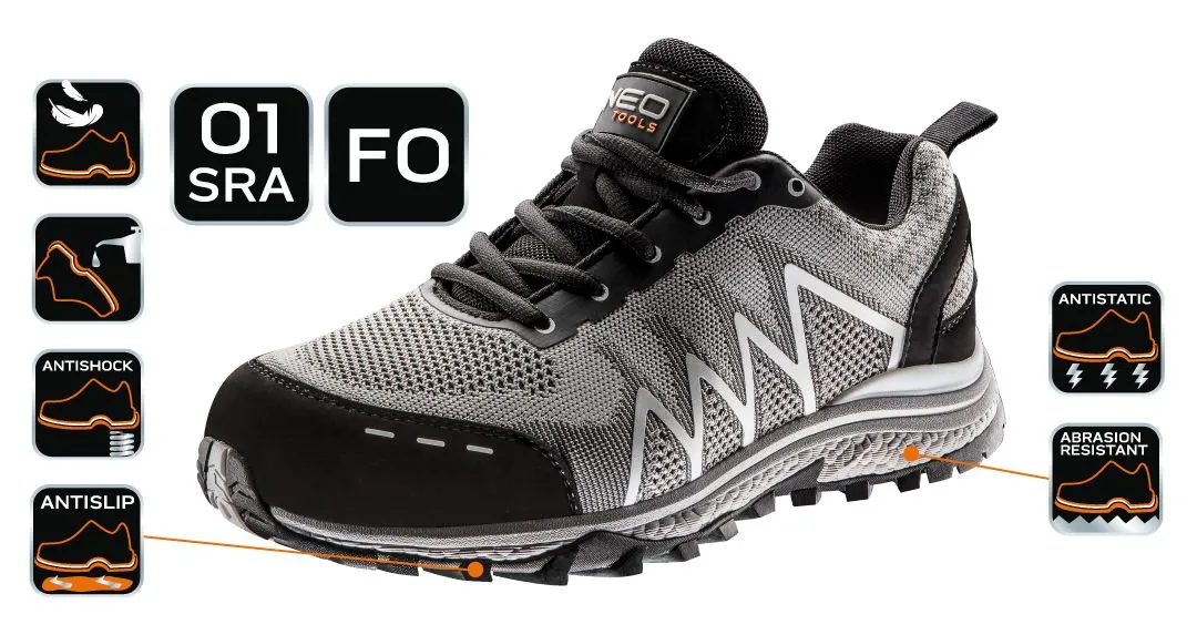 Кросівки робочі Neo Tools, легкі, дихаючі, ударопоглинання, без металу, O1 SRA, р.42(28см), сірий