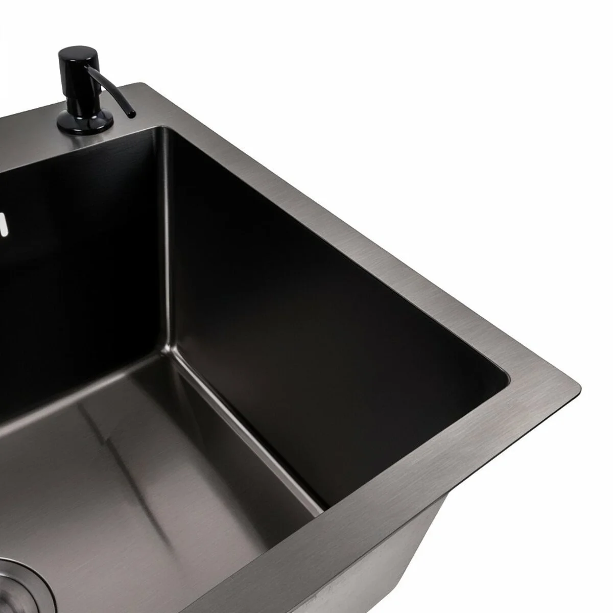 Кухонна мийка 58*43 PVD чорна Valeso Handmade (сифон круглий, 3,0/0,8)