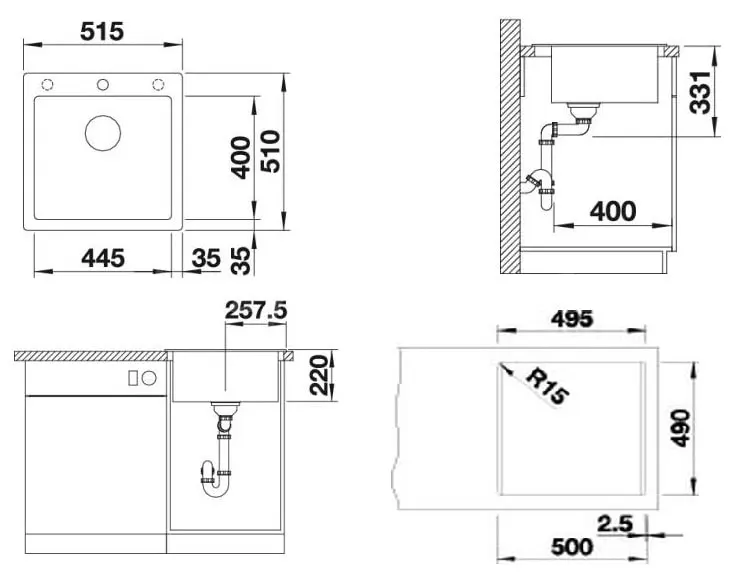 * Розміри мийка ШхГ 51,5х51 см
