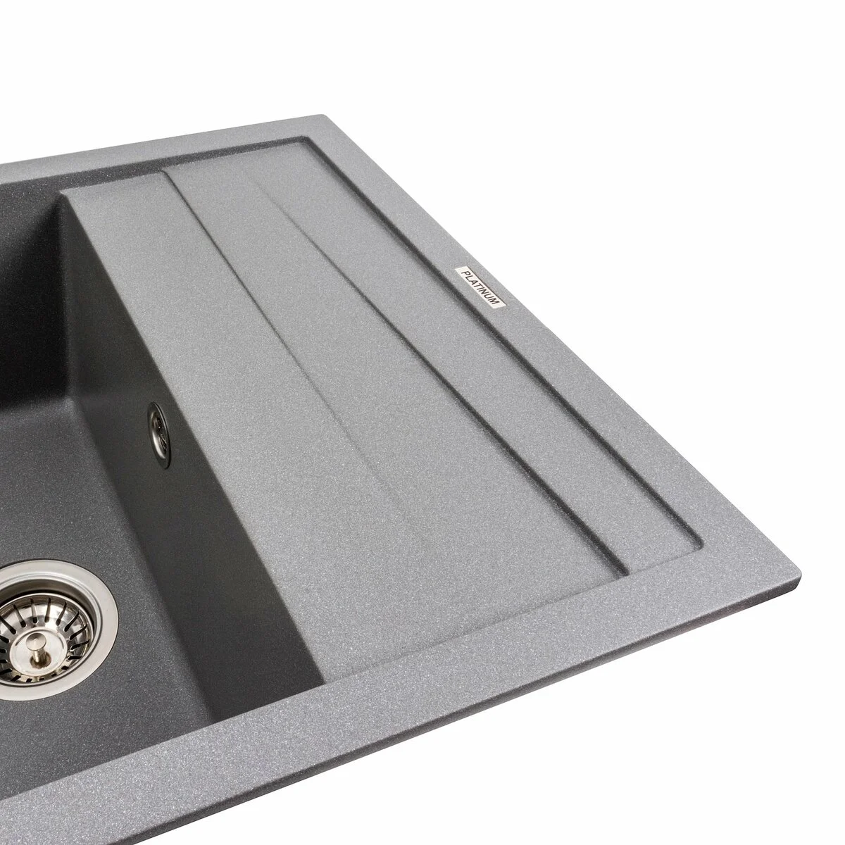 Гранітна мийка для кухні 7050 CASCADA кольору Сірий мусон українського бренду Platinum - це стильна, врізна, прямокутна мийка, яка своїм виглядом чудово доповнить дизайн вашої кухні. Мийка на 80% складається з кварцу та на 20% з надзвичайно твердої акрилової смоли, завдяки чому невибаглива у догляді, а також має великий запас міцності.