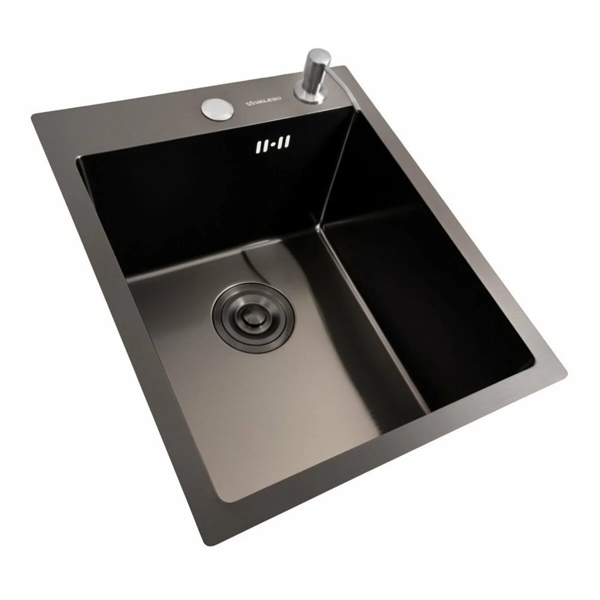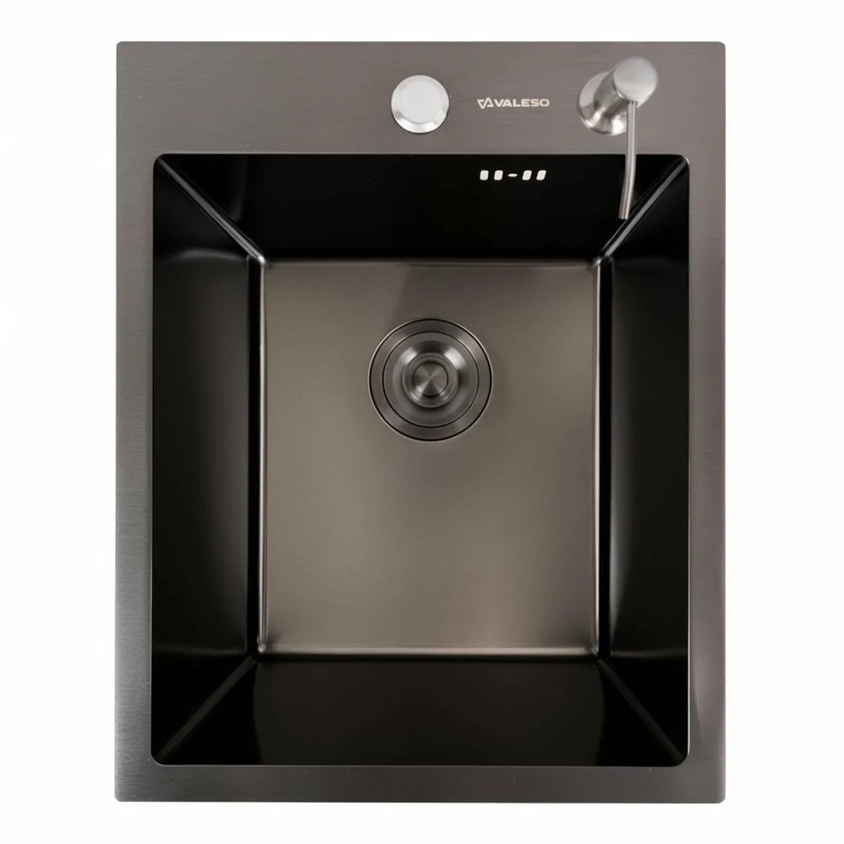 Кухонная мойка PVD черная 40*50 VALESO Handmade (толщина 3.0/1.5)  це відмінне стильне рішення для кухні невеликих розмірів. Лаконічний дизайн форми добре пасує різним інтер’єрам кухні.