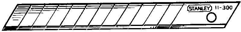 Лезо запасне шириною 9,5 мм з 12-ма сегментами, що відламуються. Диспенсер з пристосуванням для обламування використаних сегментів лез і їх зберігання.