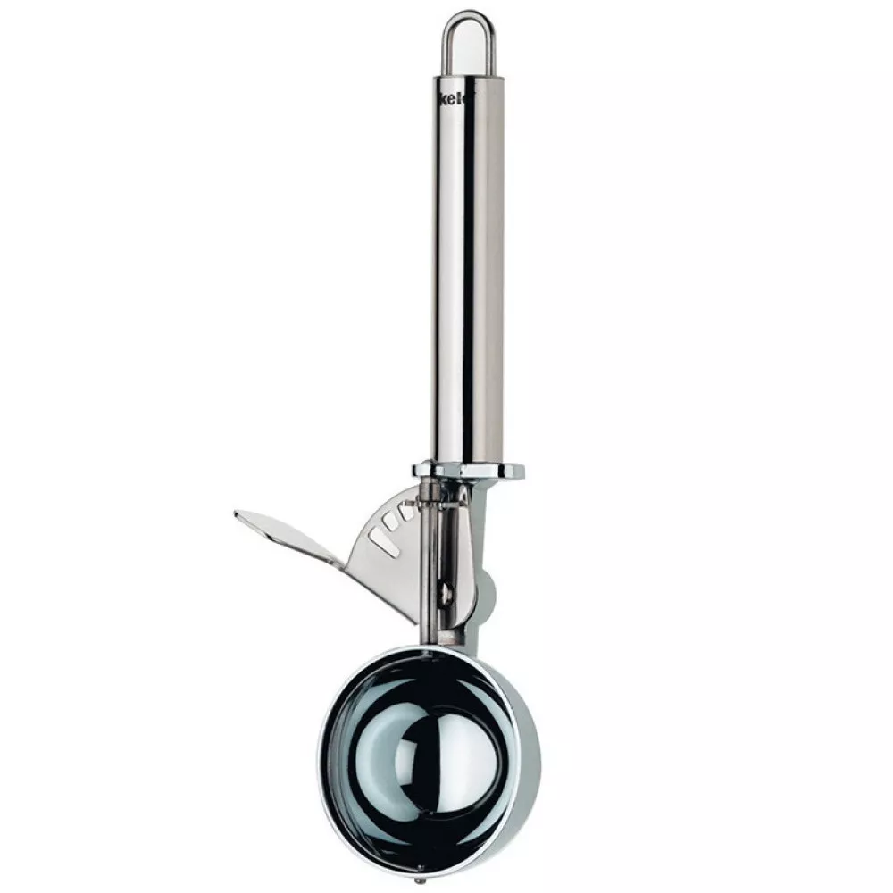Ложка для морозива KELA Rondo з харчової нержавіючої сталі. Практична ложка для роздачі порційного твердого морозива. Також підходить для колотого льоду. Практична деталь: петля для підвішування на рукоятці. Якщо вам подобається дизайн товарів Rondo, у нас нас на сайті, через поле пошуку, ви можете знайти більше ніж 20 інших позицій кухонного приладдя з цієї серії.]]>