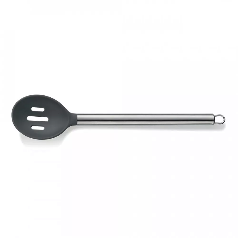 Німецький виробник посуду і начиння для кухні KELA представляє незамінний кухонний аксесуар - сервірувальну ложку KELA BILL з прорізами. Робоча поверхня ложки виконана з нейлону і має 3 великих отвори, що дозволяє легко стікати зайвій рідині. Останнім часом сучасні господині віддають перевагу нейлону, адже він не впливає на смак або запах їжі, досить міцний і простий у догляді, не дряпає антипригарне покриття. Високоякісний кухонний помічник оснащений зручною овальної ручкою з нержавіючої сталі і практичною петлею для підвішування, так що його можна або повісити на гачок, або зберігати в ящику після використання. Ложка сервірувальна KELA BILL має довжину 34 см і тому ідеально підходить для зручного й безпечного використання, а також подачі гарячих страв.
