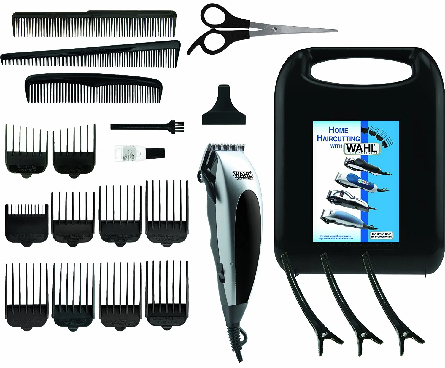 Машинка для стрижки WAHL HomePro, від мережі, вібраційний мотор, насадок-8, кейс,ножиці, гребінець в