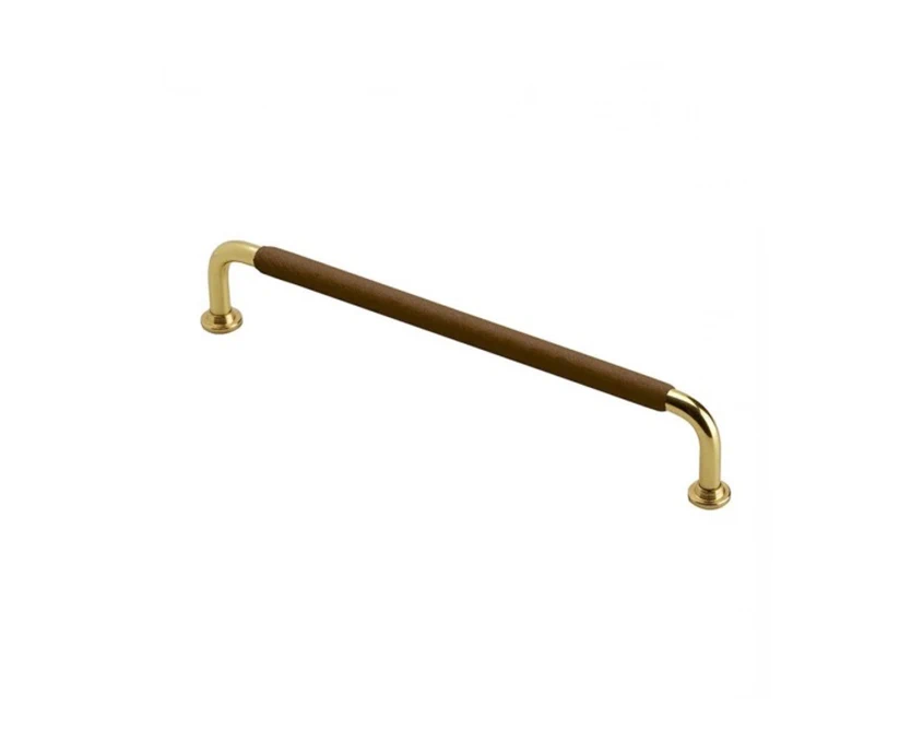 Меблева ручка Beslag Design 330766-11 Полірована латунь/Коричнева шкіра