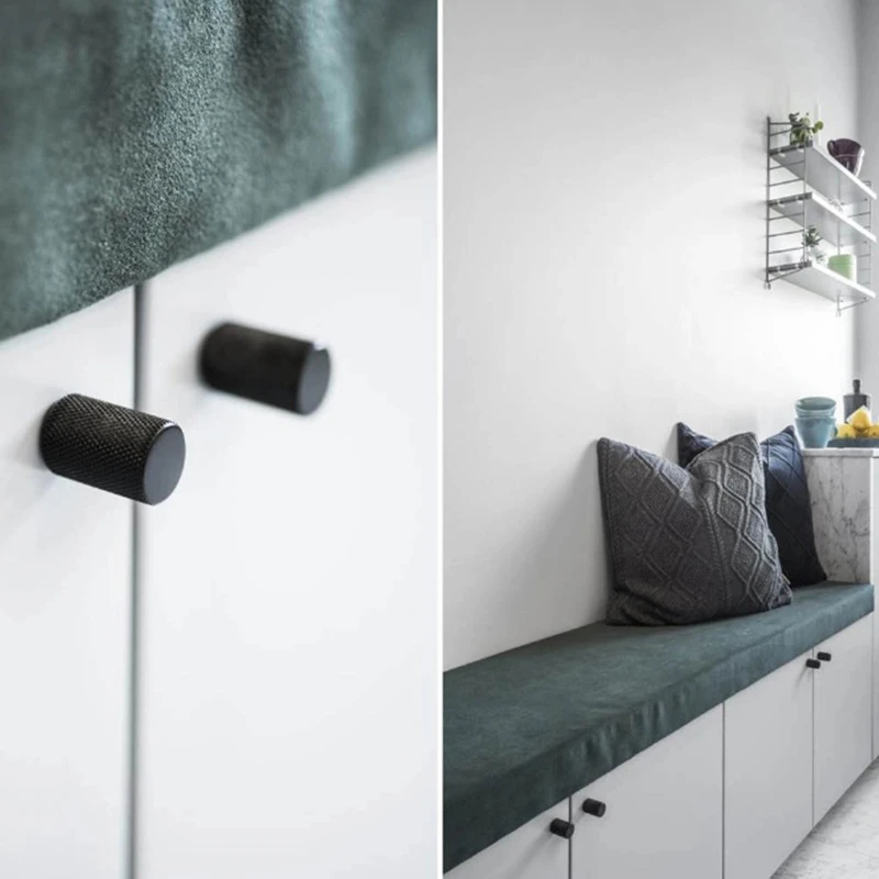 Маленька, але міцна ручка промислового дизайну з полегшеною поверхнею. Така поверхня є приємною деталлю, яка одночасно забезпечує гарне зчеплення. Виконується у трьох кольорах: латунь, матова чорна та нержавіюча сталь.