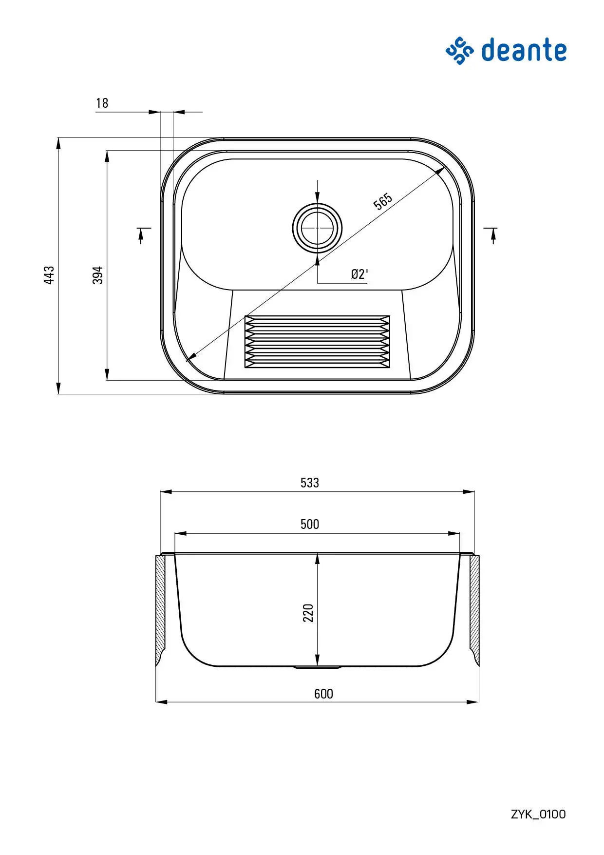 Мийка кухонна Deante Household, нержавійка, прямокутник, без крила, 533х433х220мм, чаша - 1, підвісн