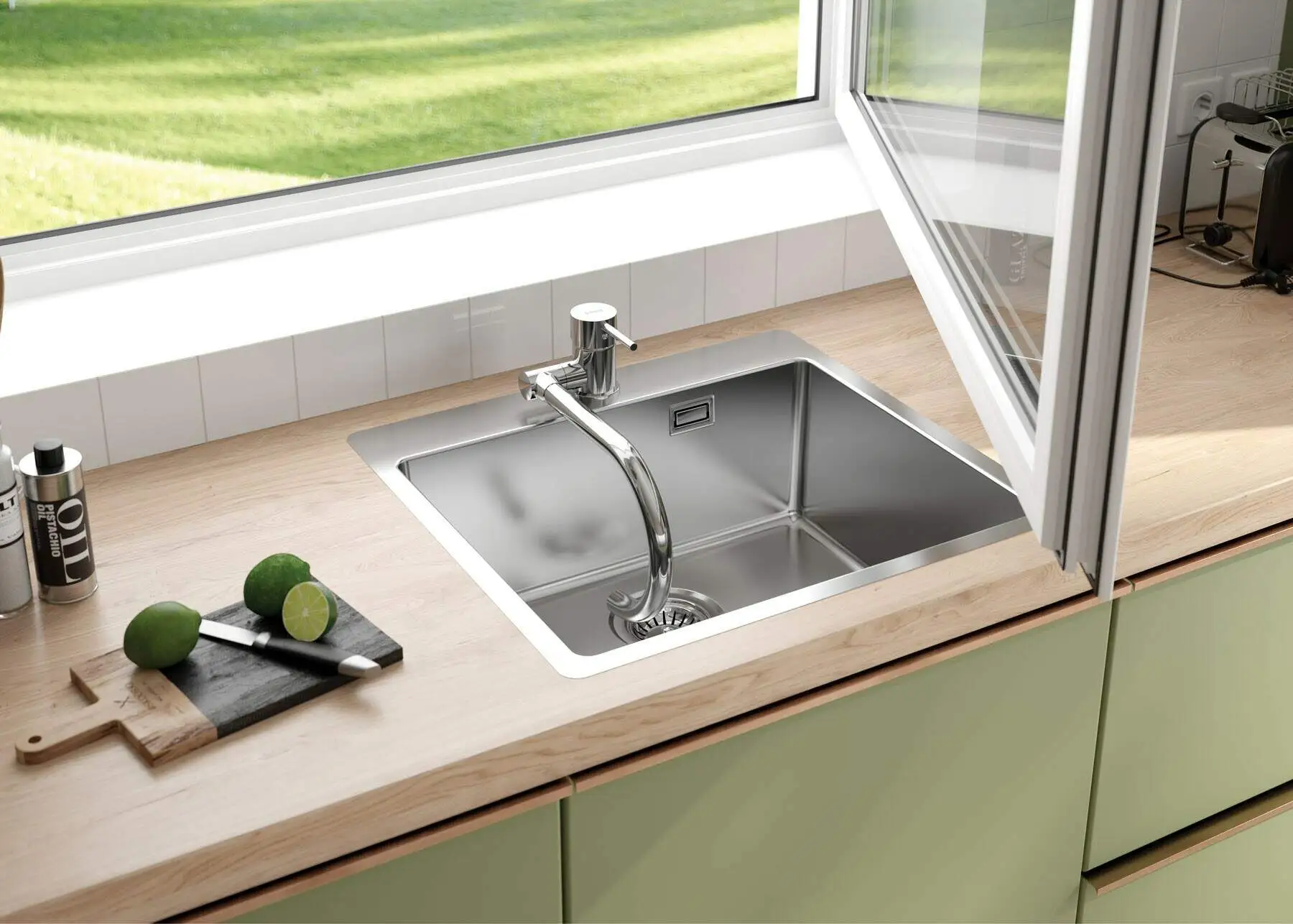Високоміцна нержавіюча сталь. Мийка із сифоном для підключення до посудомийної машини. Природні антисептичні властивості стали. Спеціальний засіб, безпечний для поверхонь, що очищаються. Компактний сифон Space-saver дозволяє обмежити місце під мийкою. Винятково простора і глибока чаша вміщує навіть деко, витягнуте з духовки.