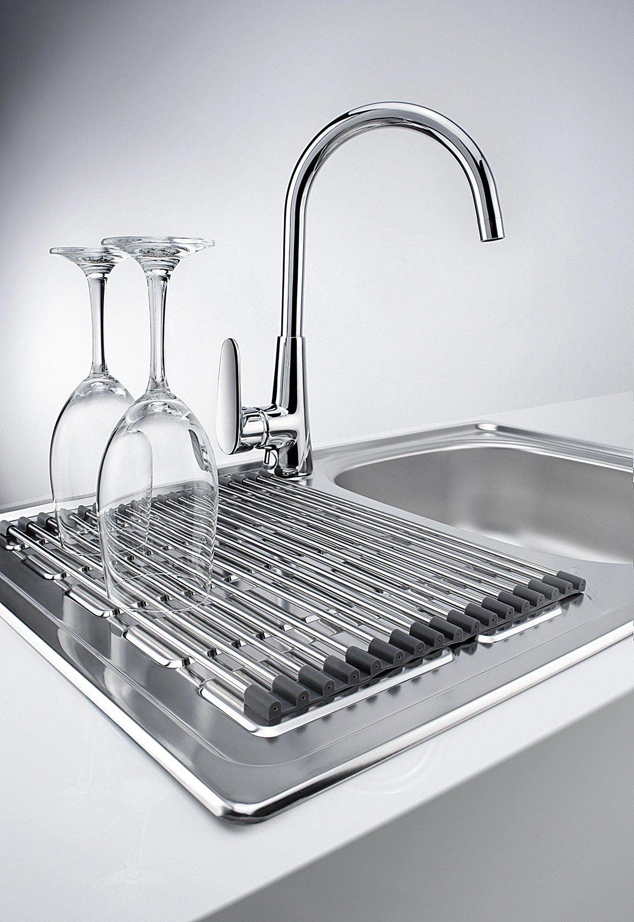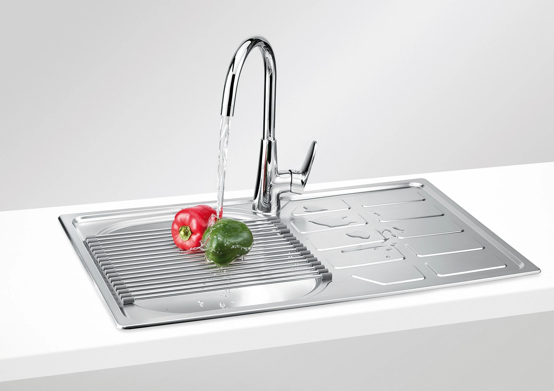 Високоміцна нержавіюча сталь. Кухонна раковина обладнана сифоном з підключенням до посудомийної машини. Природні антисептичні властивості сталі. Реверсивна сталева кухонна раковина-монтується з лівої або правої сторони.