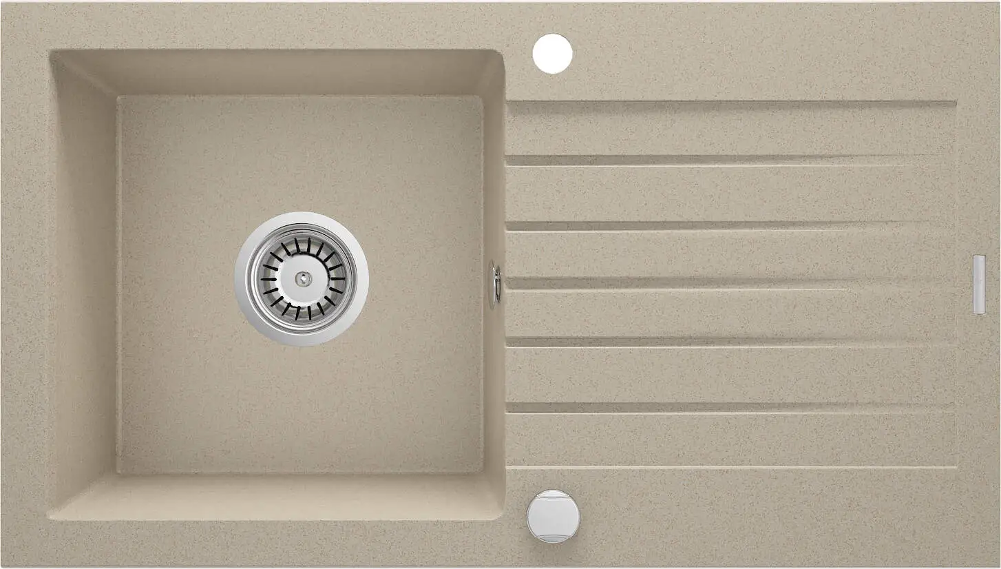 Мийка кухонна Deante Zorba, граніт, прямокутник, з крилом, 760х440х160мм, чаша - 1, накладна, пісок