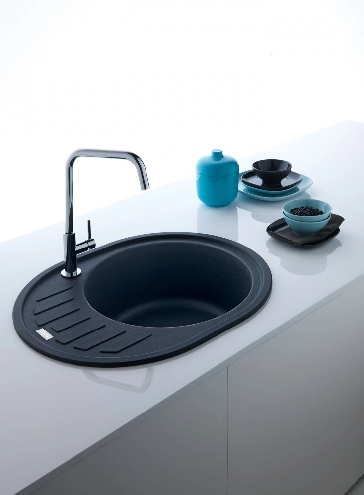 Мийка кухонна Franke RONDA фраграніт, овал, з крилом, 770х500х205мм, чаша - 1, врізна, онікс
