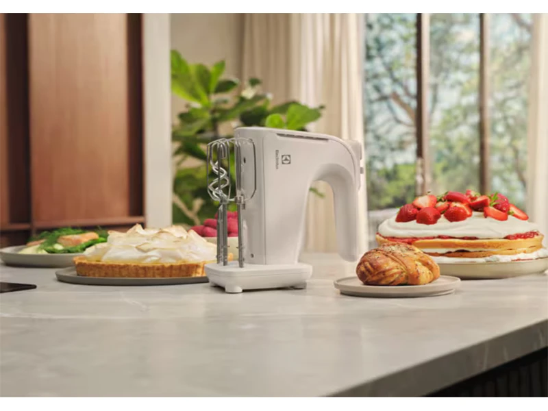 Швидко готуйте улюблені страви за допомогою міксера 300 Hand Mixer. Однаково ефективний для традиційних і рослинних продуктів, незмінні результати щоразу. Він виготовлений із переробленого пластику та має компактну підставку для аксесуарів.