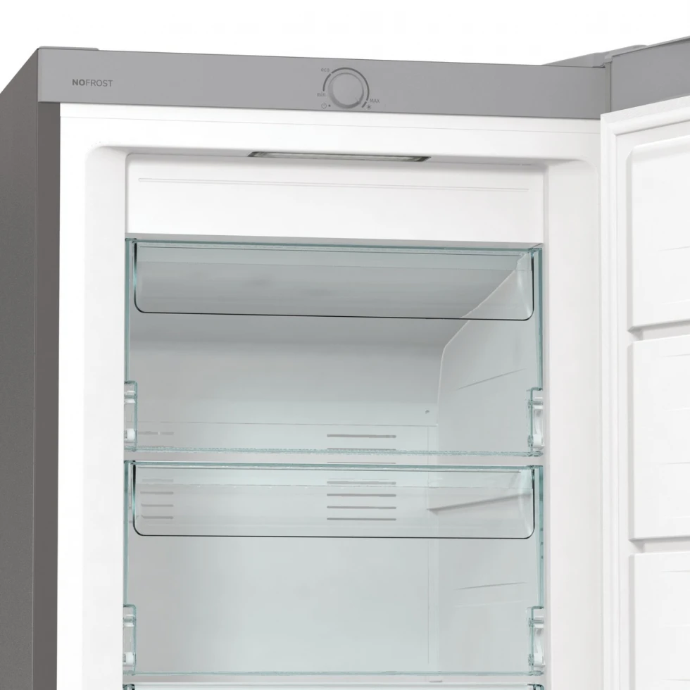 Інтенсивна циркуляція холодного повітря видаляє вологу з вертикальної морозильної камери. Це запобігає накопиченню інею на продуктах і льоду на внутрішніх стінках холодильника та сприяє економному споживанню енергії. Як наслідок, корисний об’єм камери використовується оптимально, а розморожування й очищення внутрішніх поверхонь більше не потрібні. Пакунки й окремі заморожені продукти не злипаються, а отже залишаються чистими та охайними.