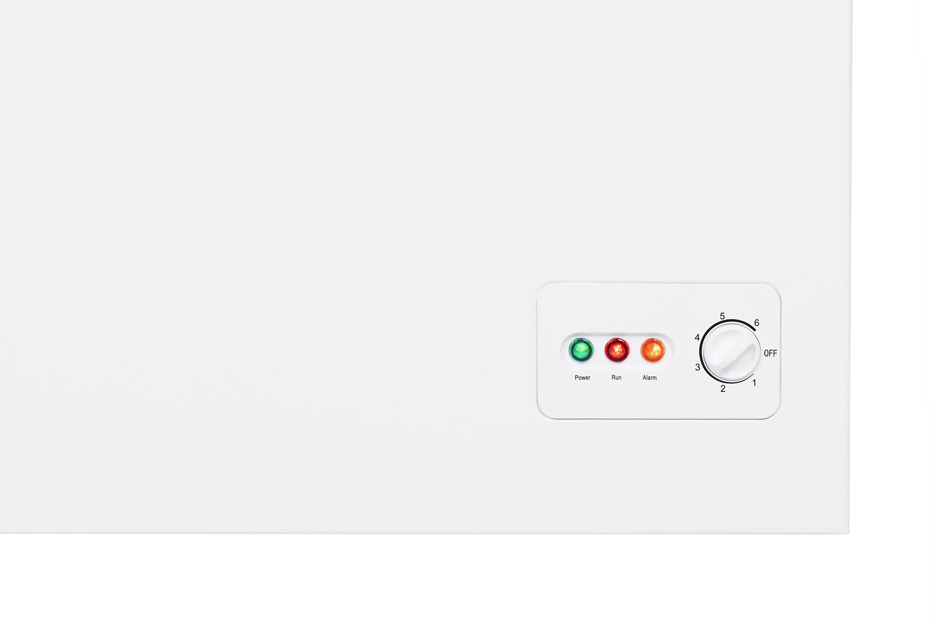 Велика морозильна скриня білого кольору з механічним керуванням та підтримкою роботи у режимі холодильника. Енергозбереження відповідає класу А+, а корисний об’єм складає 290 л.