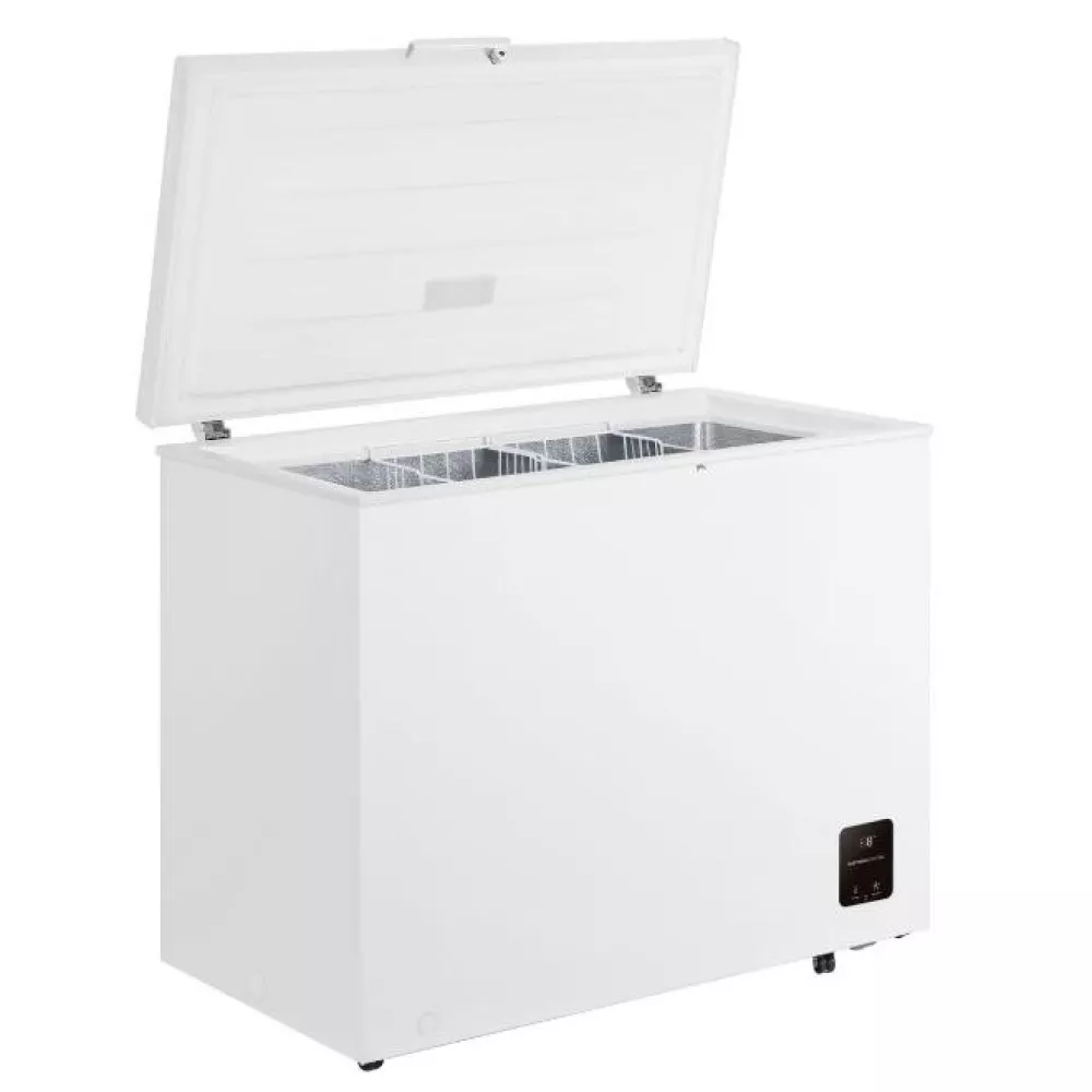 Оптимальна ефективність при низьких температурах. Сильний холод не завадить при використанні цієї морозильної шафи, оскільки вона добре працює, навіть якщо температура зовні опускається до –15 °C. Тому вона ідеально підходить для встановлення в гаражі або льоху.Завдяки чотирьом коліщаткам, пристосованим для роботи у важких умовах, та зручним боковим ручкам морозильну камеру можна легко та вільно переміщати.Економічні довгасті світлодіодні світильники енергоефективні, служать довше і споживають менше енергії. Міцний замок гарантує безпечне зберігання продуктів у морозильній камері.Чи потрібно заморозити велику кількість їжі? За допомогою функції FastFreeze продукти заморожуються при температурі приблизно –24 °C, щоб зберегти більшу частину мінералів, що містяться в них. Приблизно через 26 годин ця функція автоматично вимикається, а температура морозильної камери повертається до вихідного значення.]]>