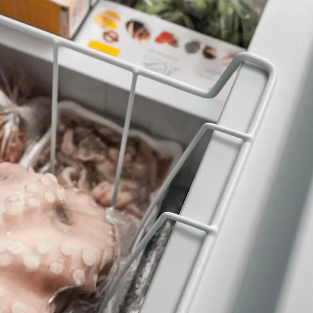 Морозильна скриня INDESIT OS1A400H1 - це універсальний пристрій для заморозки різних продуктів. Корисна площа камери становить 395 літрів. Це вельми вражаюче при тому, що її морозильна потужність досягає 20 кг на добу. Морозильна скриня має клас енергоефективності А+, що забезпечить якісні результати в поєднанні з низьким рівнем енергоспоживання. Функція Швидке заморожування в морозильній камері Indesit OS1A400H1 дає змогу зберегти текстуру та смакові якості продукції й дає змогу уникнути кристалізації рідини. Морозильна скриня має спеціальні петлі, які дають змогу легко піднімати кришку і залишатися відкритою під будь-яким кутом.