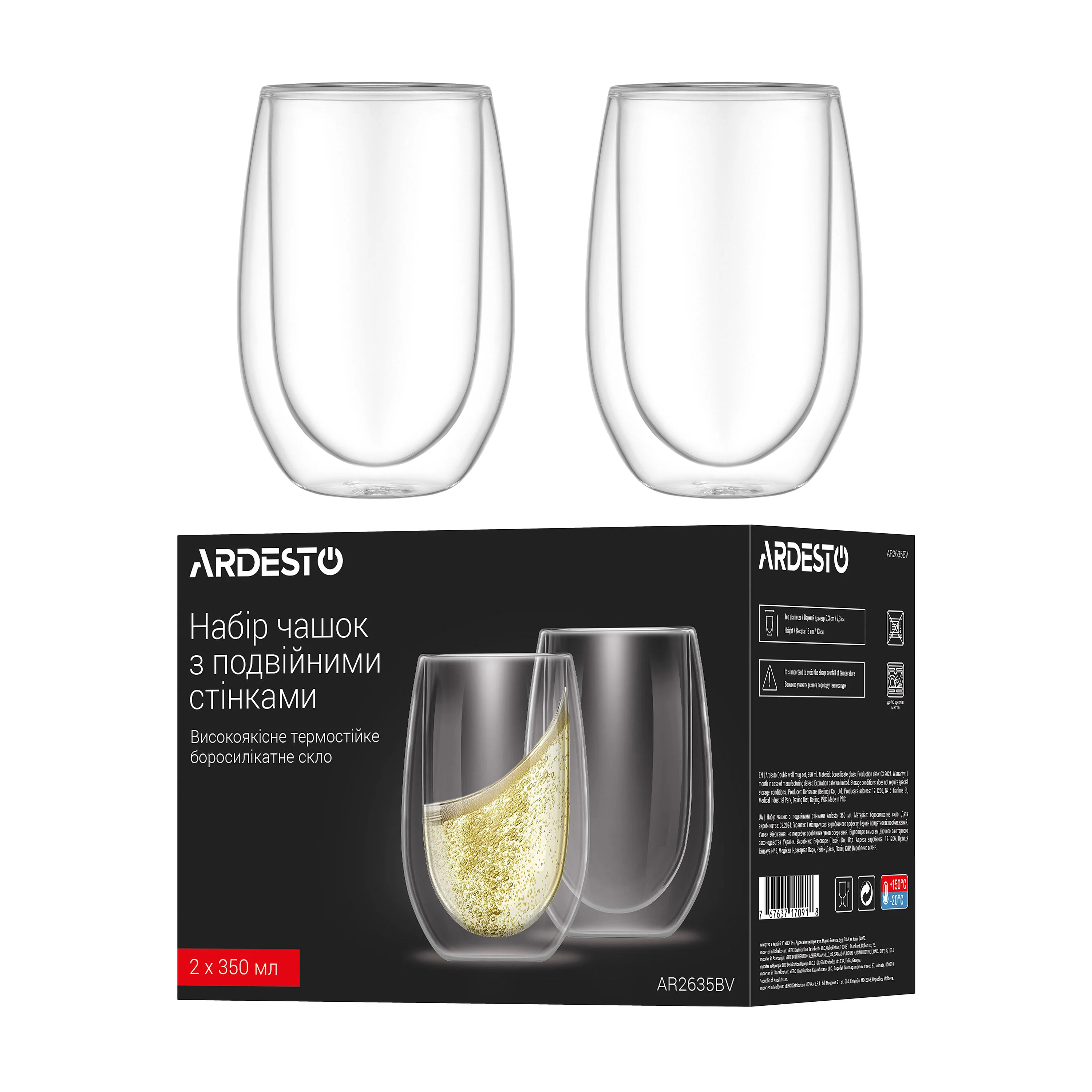 Набір чашок з подвійними стінками Ardesto, 350мл, 2шт, боросилікатне скло, прозорий