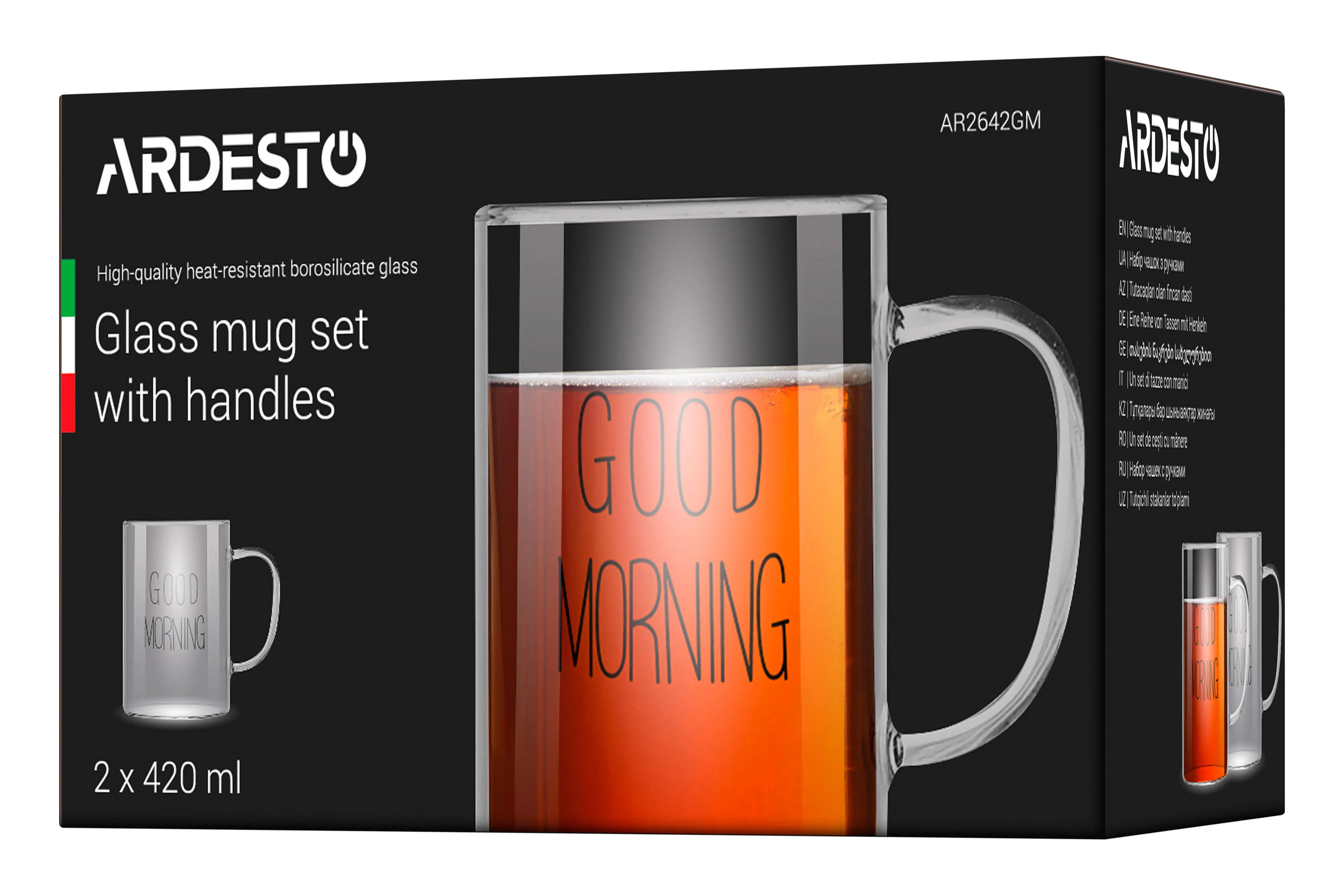 Набір чашок з ручками Ardesto Good Morning , 420мл, 2шт, боросилікатне скло, прозорий