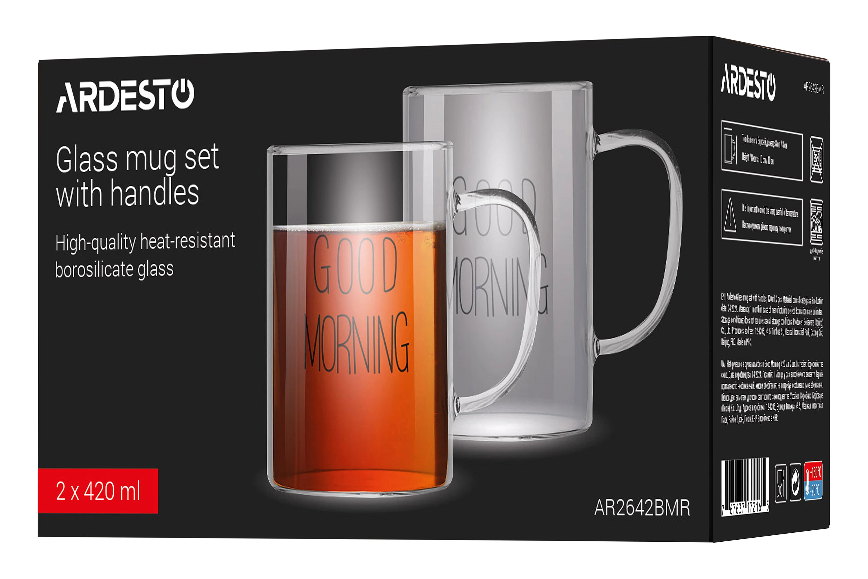 Набір чашок з ручками Ardesto Good Morning, 420мл, 2шт, боросилікатне скло, прозорий