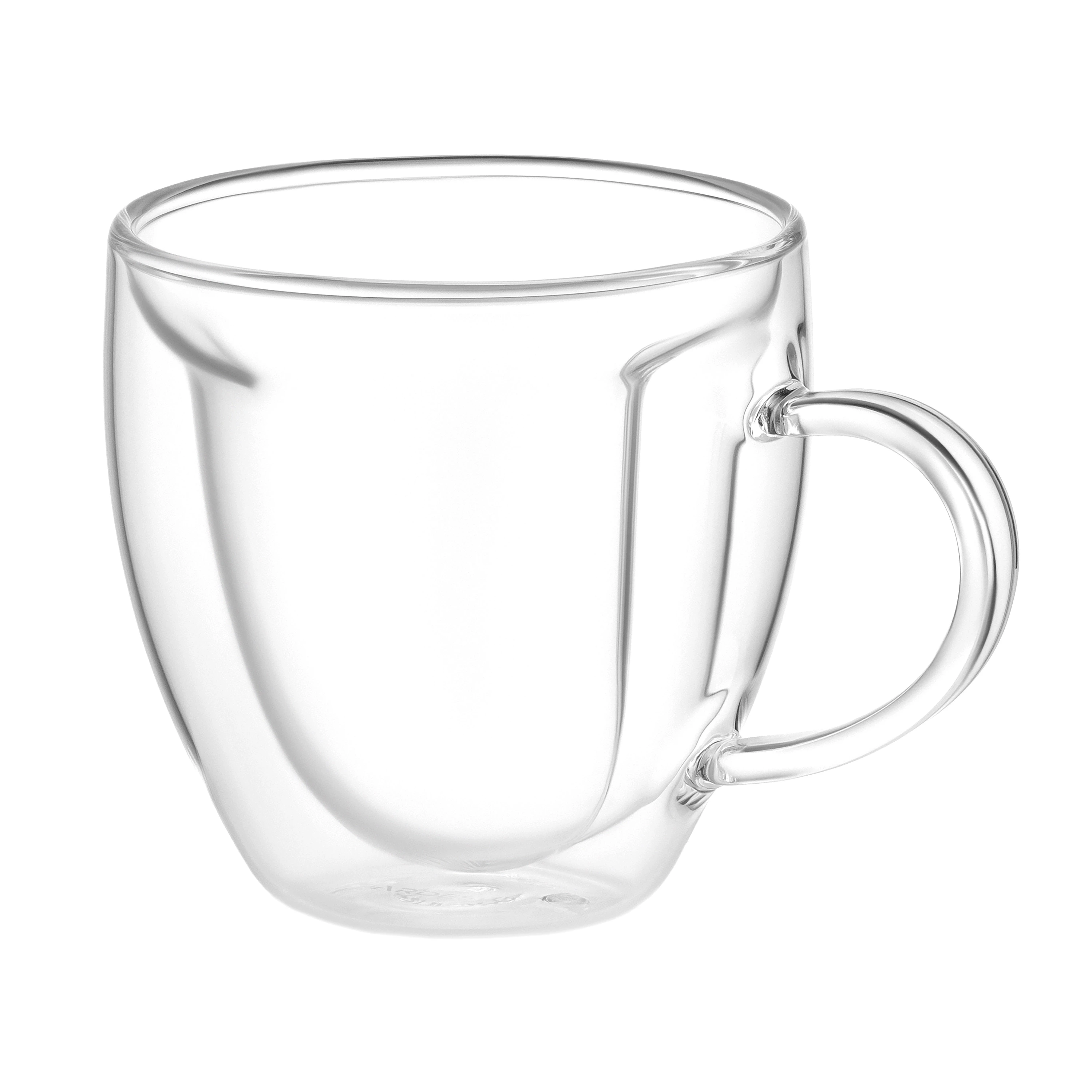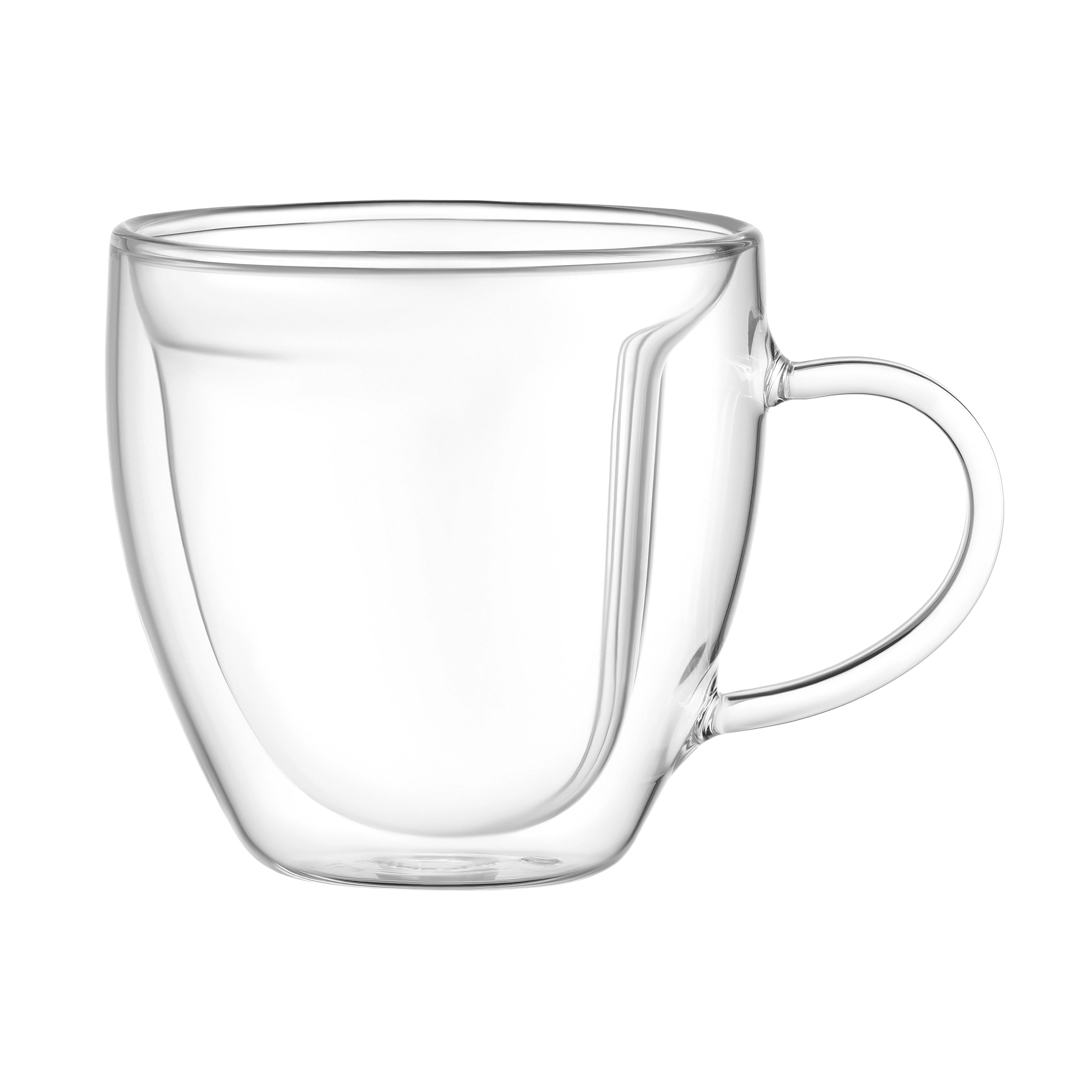 Чашки з подвійними стінками – це насолода для поціновувачів естетики та практичності. Вони надзвичайно міцні та легкі, витримують температуру від -20 до +150 °C. Їх можна використовувати як піали або креманки для морозива. Завдяки особливій конструкції здається, що напої та десерти в них парять у повітрі.