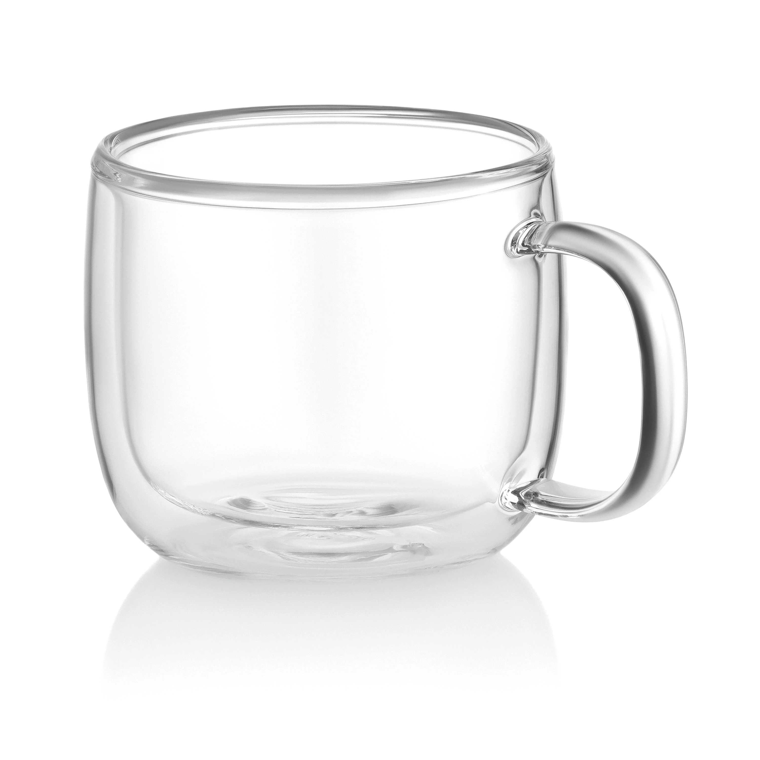 Чашки з подвійними стінками – це насолода для поціновувачів естетики та практичності. Вони надзвичайно міцні та легкі, витримують температуру від -20 до +150 °C. Їх можна використовувати як піали або креманки для морозива. Завдяки особливій конструкції здається, що напої та десерти в них парять у повітрі.