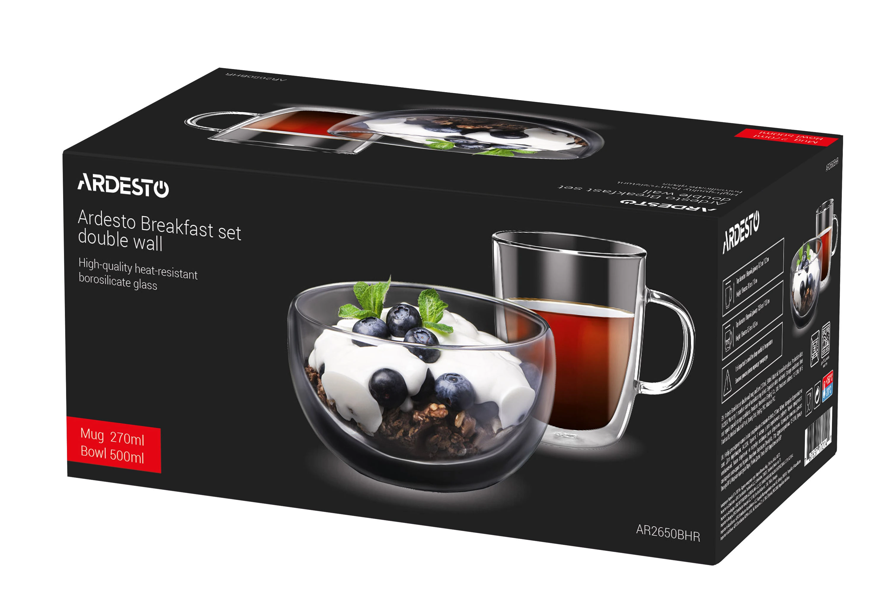 Набір для сніданку чашка і піала з подвійними стінками Ardesto, 270мл, 500мл, боросилікатне скло, пр
